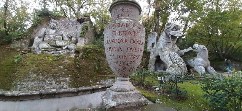 点评:Sabato 8 novembre abbiamo trascorso quasi due ore nel parco alla ricerca di uno stimolo emozionale che ci faccia capire come nel secondo Cinquecento fosse rinomato questo luogo additato ad esempio di alta cultura d'arte immersiva nella natura, capace di generare meraviglia. Il Principe Orsini lo dedicò alla moglie defunta Giulia Farnese, si pensa sepolta nel tempietto, che purtroppo ho visto solo in esterno.