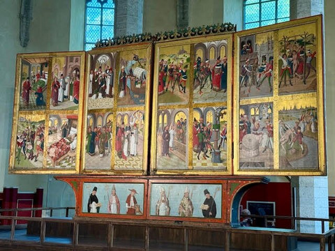 翻译:我们下午 4 点去的,正好是管风琴音乐会开始的时候。我们一边听着管风琴,一边在这座由教堂改建而成的博物馆里散步。在我看来,这里的艺术品不足以值回票价。描述所有内容的标志都是用英语和爱沙尼亚语书写的。我觉得最值得一看的是小房间,里面的陈列柜里陈列着黑头兄弟会的银器,还有教堂后面的大教堂,里面可以看到长长的死亡之舞壁画。不要错过,一定要阅读描述信息。教堂安装了一部电梯,每次可搭载 5 人到达 4 楼的观景塔,从那里可以俯瞰城市的美景。您可以乘电梯返回,也可以使用狭窄的螺旋石阶下楼。