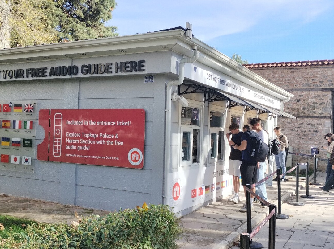 进入第一道门并通过安检后再买票!之后不久,你就会找到装有多种语言语音导览的盒子,这些导览包含在门票价格中。