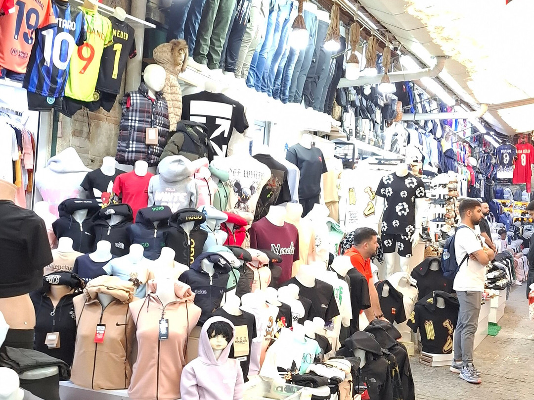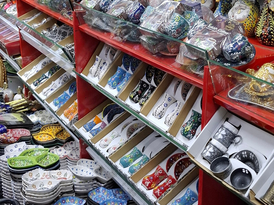 商品琳琅满目,包括足球衫、T恤、手提包、陶瓷、糖果、香料、香水、灯具以及各种你能想到的旅游纪念品。此外,还有各种各样的地毯和挂毯。