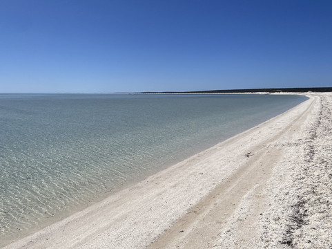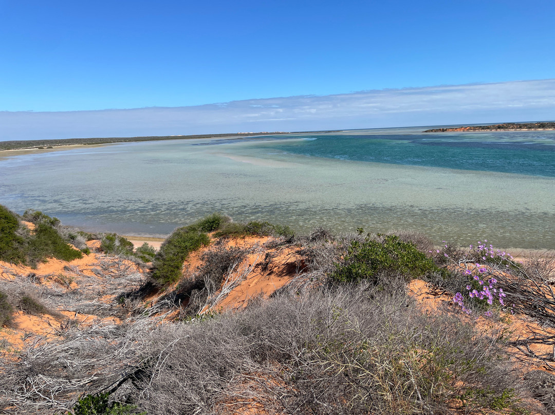 沿着鲨鱼湾路开车前往丹汉姆的途中,有很多不错的停留点。这些站点包括哈梅林池电报站、贝壳海滩和鹰巴夫悬崖。在丹汉姆附近,我们欣赏了有趣的小泻湖。
