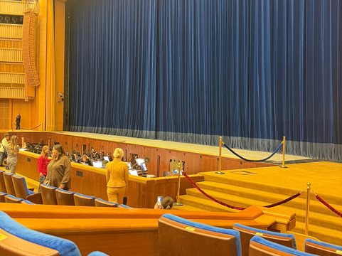 现在我们来到了剧场。我不建议带孩子去正厅前排,因为坡度有点陡;露天剧场或者更靠后的座位会更好。不过总的来说,剧场环境不错,座位也很舒适。