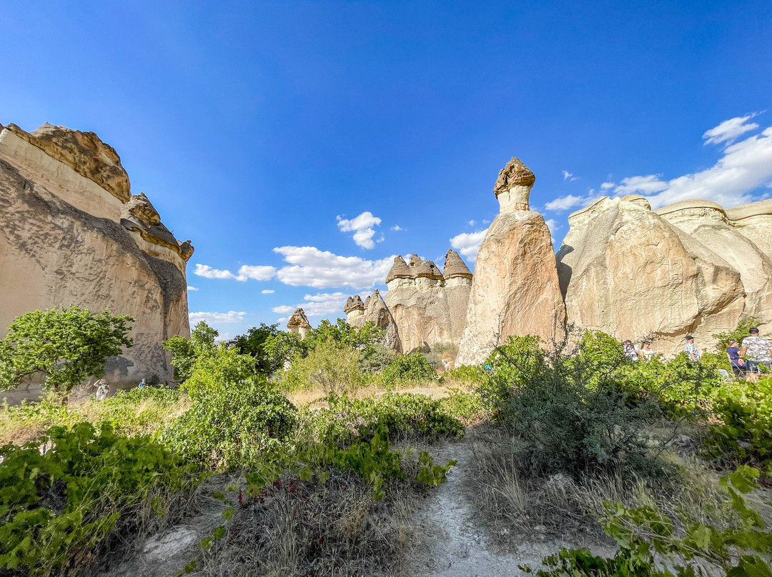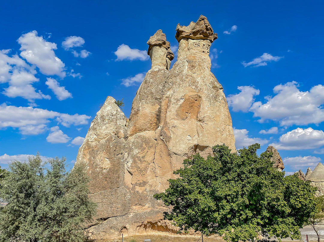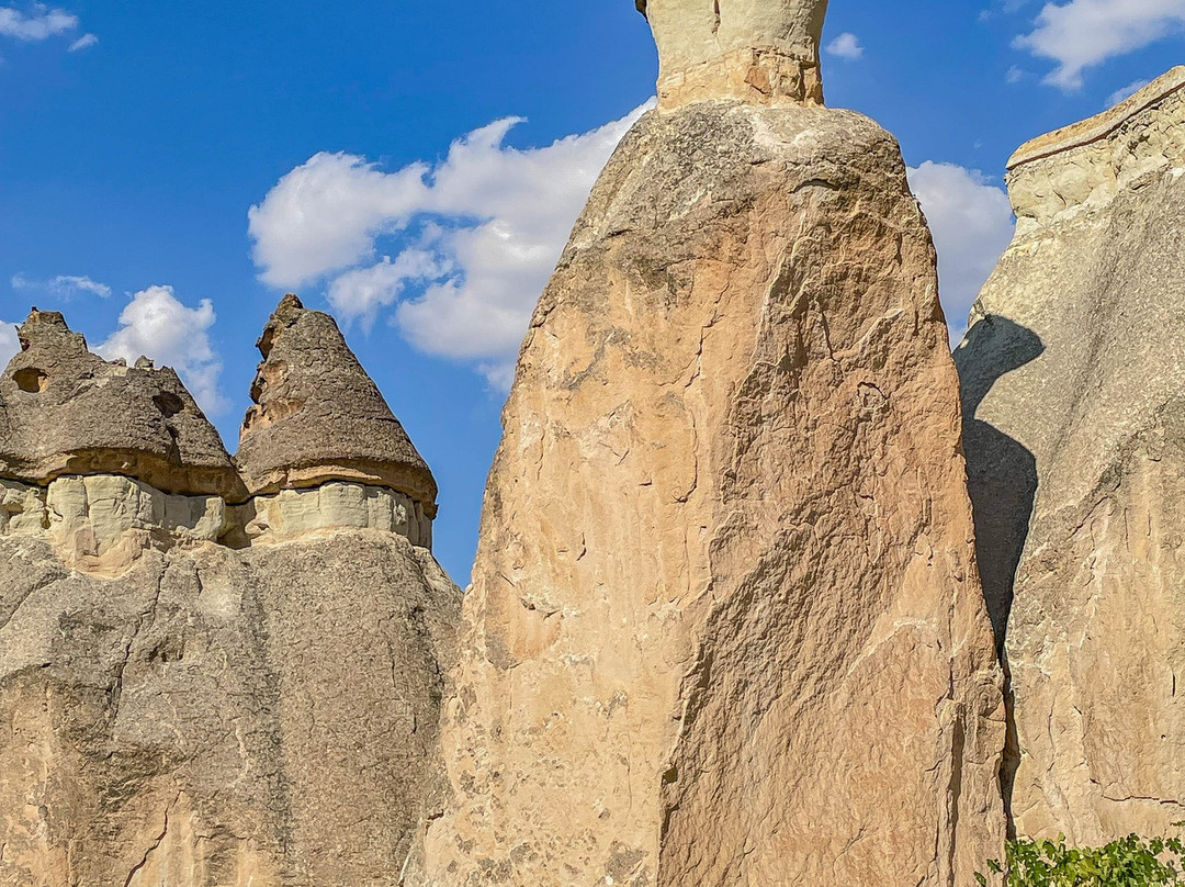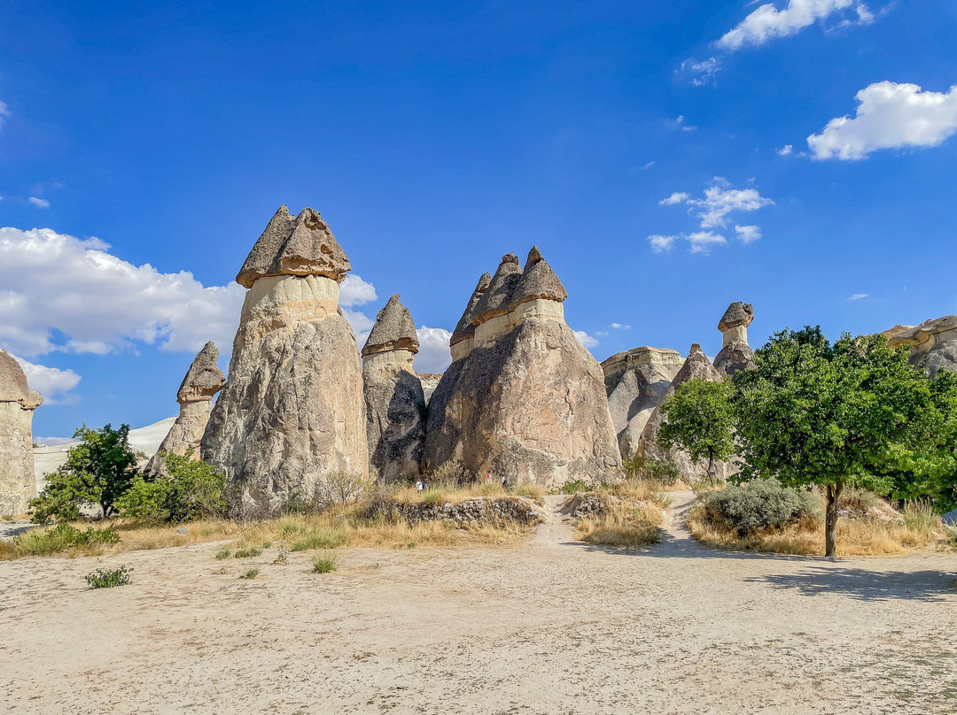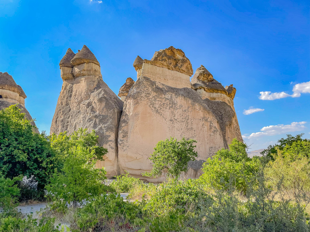 翻译:帕夏巴格山谷,又名僧侣谷,是位于卡帕多西亚库梅村的一处独特景点,距离格雷梅市东北约10公里。山谷以其奇特的岩层而闻名,这些岩层是由火山喷发和数千年的侵蚀作用形成的。帕夏巴格山谷堪称地质奇观,其标志性景观是高耸的仙女烟囱,有些高达40米。这些高耸的锥形岩石宛如一片巨大的岩石蘑菇森林。传说这些奇特的岩石是由仙女们创造的,她们在岩石下建造了地下住所——因此得名“仙女烟囱”。帕夏巴格山谷的仙女烟囱虽然不如其他山谷的仙女烟囱那么高,但形状更像蘑菇。它们的颜色并不像爱情谷那样均匀,因为它们由两种岩石构成。岩石较低、较软的部分呈米色,而较硬的顶部则呈棕色。此外,山谷中还有一些岩石地貌,它们被分割成多个锥形头部,而其他山谷中的仙女烟囱则是独立的岩层。一条铺砌的小路通往山谷,尽头是一处陡峭的悬崖,但许多岔路通往山谷,方便游客漫步于这些岩柱之间。值得注意的是,进入山谷需要支付门票,而且在旅游旺季期间可能会非常拥挤。