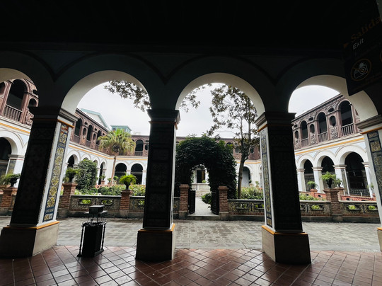 翻译:马克西莫修道院和圣玫瑰圣殿,更广为人知的名字是利马圣多明各修道院,始建于1535年。利马圣罗莎、圣马丁·德·波雷斯和圣约翰·马西亚斯等圣人都曾在此生活和行走,他们的遗物也保存于此。作为利马历史的一部分,修道院保留了装饰有塞维利亚手绘瓷砖的回廊,以及藏书超过25000册的宏伟图书馆,其中包括古代著作和摇篮本。在殖民时期,修道院曾被用作监狱和宗教裁判所,1541年西班牙征服者弗朗西斯科·皮萨罗遇刺后,他的遗体也安葬于此。钟楼*不容错过,它有九口钟,是利马最高的钟楼。
