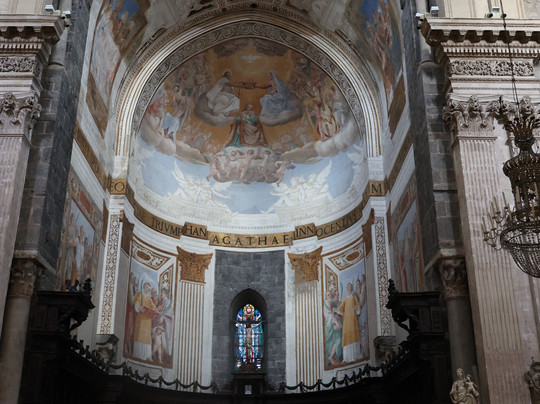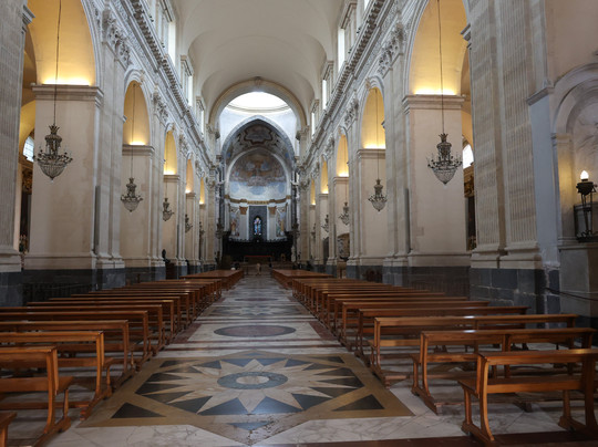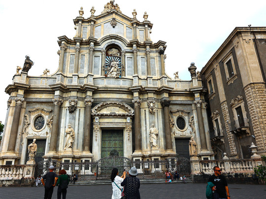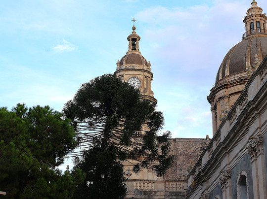点评:L'edificio attuale, progettato da Gian Battista Vaccarini dopo il sisma del 1693, presenta una facciata scenografica in marmo bianco che integra elementi delle epoche precedenti. Al suo interno, oltre alle reliquie della santa patrona conservate in un prezioso busto argenteo, si trovano le tombe di personaggi illustri, tra cui quella del celebre com-positore catanese Vincenzo Bellini.