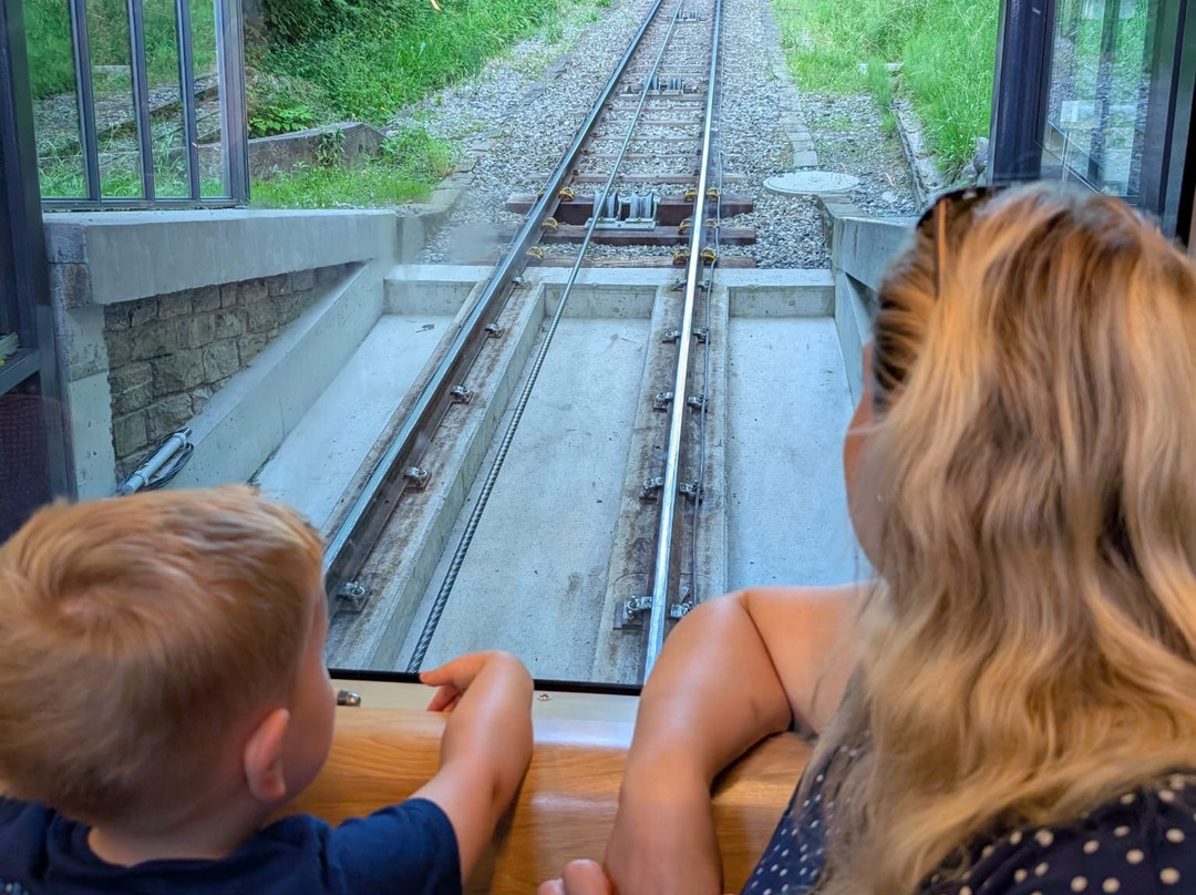 You can hike up if you like, but we took the funicular — which is part of the fun, especially for little ones. The views over Bern from the top are breathtaking, and the area is beautifully maintained with lots of open space, picnic areas, and even DIY BBQ stations.