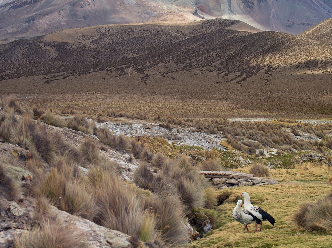 点评:Salida desde La Paz, el Prado 06:00 am. tour me costo 190 Bs. El paisaje es hermoso si el ALTIPLANO te interesa, sino es solo desierto y puedes ir durmiendo. Si no vas viendo tu celular y miras la ventana, encontraras llamas, alpacas, vicuñas, aves, y flores de cactus durante las 6 horas que toma llegar a las aguas termales. Debido a que vas en bus muchas horas, recomiendo tener buena musica, audifonos comodos, un termo con cafe caliente porque hay areas en las que te hace frio. Compre en Patacamaya un charque de llama, DELICIOSO!! uff, que sabores, el restaurante se llama Sajama, el chaque lo comi al salir de las aguas termales, el tour incluia almuerzo pero debes saber que sales con hambre. Lleve chocolate RUAH, wow que maravilla de chocolate! y mucha agua. Bloqueador solar y sombrero! el sol DUELE A 4200 metros. Disfruta de ver al los hermanos volanes Parinacota y Pomarape y bañarte, si logras hacerlo temprano antes que la multitud de turistas ataque el area frente al Sajama.