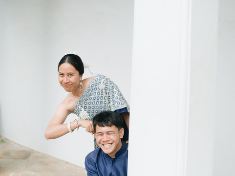我和哥哥穿着在Mahasane Costume租来的泰国民族服装拍摄了照片(强烈推荐)。