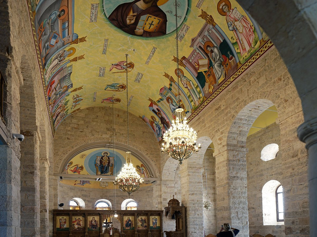 点评:Partiti da Amman alla volta di Petra abbiamo fatto una breve sosta a Madaba per vedere, nella chiesa di San Giorgio, il famoso mosaico/mappa della Palestina. L'edificio è moderno con all'interno i colori e le immagini tipici della tradizione ortodossa e non sarebbe nulla di particolare se non fosse per i resti di un mosaico, risalente intorno al 550 d.C. che costituiva il pavimento di un precedente edificio e che rappresenta, con un bel po' di fantasia e senza minimamente curarsi di distanze e proporzioni, la Terra Santa e fino alla foce del Nilo: in particolare vi è Gerusalemme cinta da mura ed il Mar Morto con due barche i cui occupanti hanno i visi cancellati al tempo delle devastazioni portate dagli iconoclasti bizantini. Tutto molto interessante e suggestivo la cui visita non richiede neppure molto tempo, poi si può tranquillamente proseguire perchè a Madaba, a parte le solite numerosissime bancarelle, non mi risulta vi sia altro d'interessante.