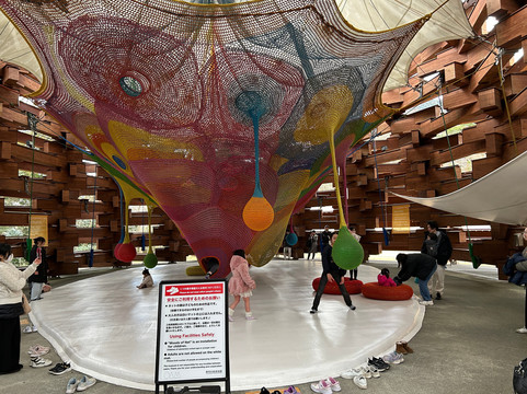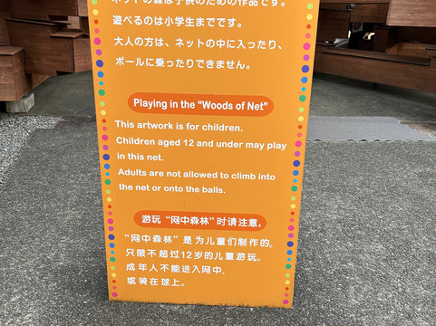 我们乘坐自动扶梯下山,然后顺时针方向漫步欣赏风景和艺术 - 下山后,在色彩鲜艳的艺术沙发雕塑上休息,沿着小路走,过桥,爬上楼梯欣赏沿途的艺术品,进入星形迷宫,进入巨型林肯原木式结构,12 岁以下的儿童可以在网上玩耍......然后进入室内毕加索馆,里面还有 319 件作品,是一个暖和的好地方(我们二月份去过)。博物馆的另一边是咖啡馆,菜单上只有两种“食物”:松饼和热狗,还有一些糖果和饮料;它还出售一些布袋和其他小玩意。咖啡馆附近是一个室外天然温泉足浴。我们太兴奋了,以至于直到脚都湿了才意识到我们应该买一条 100 日元的毛巾!擦干脚后,我们往回走,停下来在巨型煎蛋上摆姿势。一个小时 20 分钟后到达入口,我们在更大的博物馆商店停了下来。然后,我们使用箱根周游券从雕刻之森站乘坐箱根登山电车,一站返回强罗站。这是独特、美丽、与众不同且令人放松的。