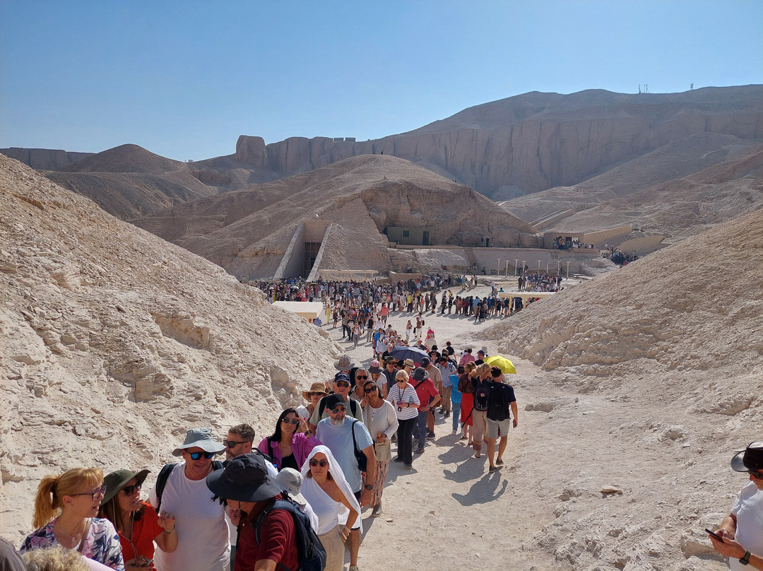 点评:Be prepared for CROWDS! There was mandatory screening of all bags and people at the entrance. In the Visitor Centre, a 3D map showed the tombs. Looking underneath, the tunnels that lead to each tomb can be seen. Shuttle vehicles ferried visitors from the entrance up to the tomb area. It all appeared rather shambolic, but we did get our turn. Our ticket allowed us entry into our choice of 3 tombs. A separate ticket was required for King Tutankhamun's tomb. There were long queues for entering the tombs although they did move quite quickly. We discovered why when we were inside the Tomb of King Tut! There was an officious attendant monitoring the queue and instructing people to move on. Definitely no lingering to savour the moment! Wear walking shoes, sunhat and sunnies. It was very hot in the Valley in November. There was a cafe, but seating was completely full!