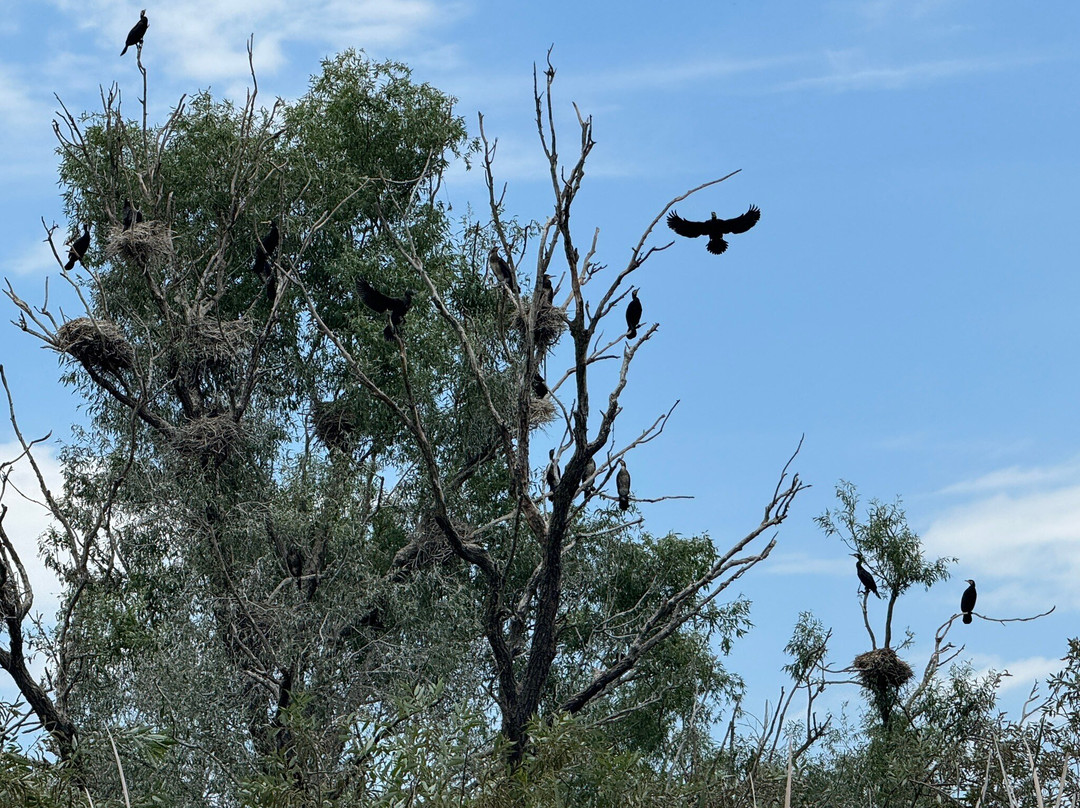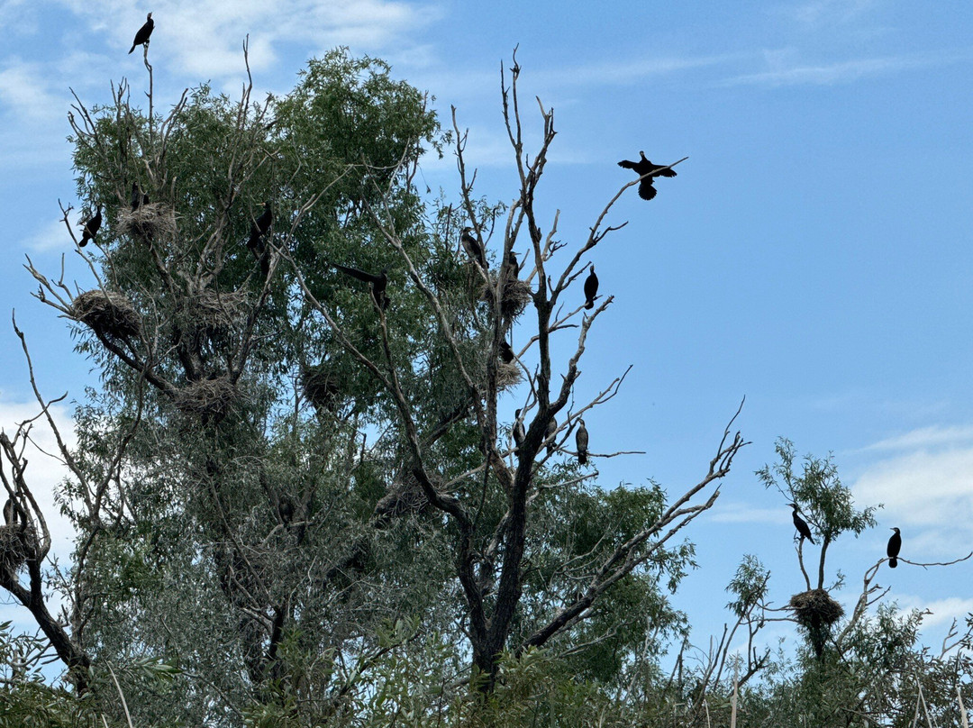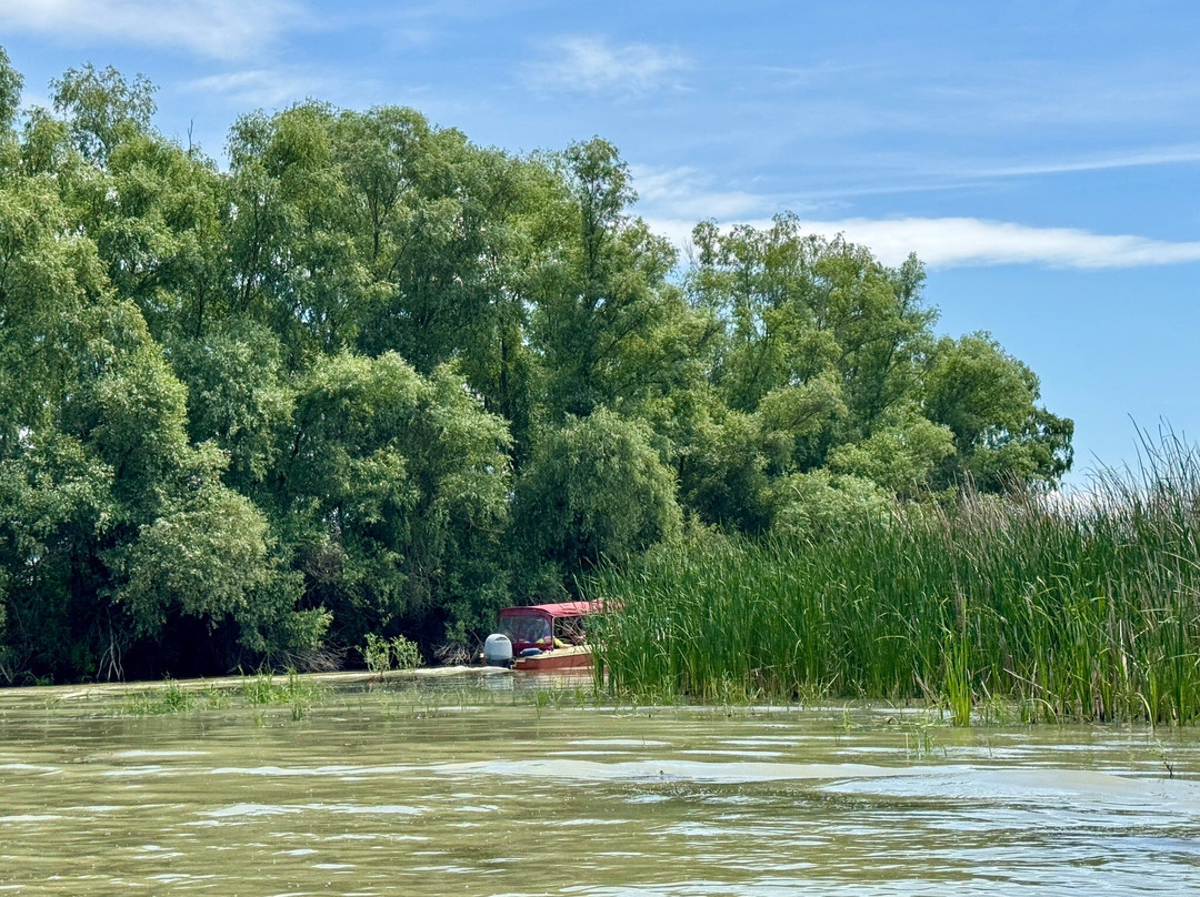 抵达图尔采后,我们开始了为期两小时的小船之旅。船很舒适,起步速度也很快。进入多瑙河三角洲较窄的河道后,我们放慢了速度,以便观察鸟类、鹈鹕和其他美丽的鸟类。自然风光和宁静的氛围令人叹为观止。我们非常享受这次乘船之旅,甚至还观察到了一些三角洲的居民。