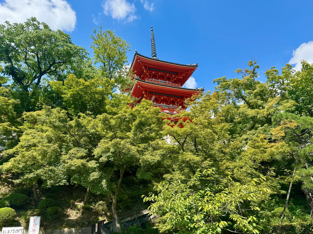 点评:Jedno z najczęściej zwiedzanych miejsc w Kioto położone jest na zalesionych zboczach Higashi-yama i ma ponad 1.200 lat. Zbudowana tu świątynia paliła się wielokrotnie i to co obecnie oglądamy to budynki pochodzące z początku XVII wieku. Nazwa świątyni "Czysta Woda" pochodzi od świętych źródeł usytuowanych w sąsiedztwie. Święta woda przynosi podobno szczęście i długowieczność. Wszystkiego tego jednak nie można osiągnąć jednocześnie, bowiem pić można tylko z jednego ze źródeł, gdyż inaczej pijący będzie uważany za zachłannego. W okresie Edo uważano, że jeśli ktoś przeżyje skok z 13 metrów ze świątynnego tarasu jego życzenie zostanie spełnione. Większość skoczków miało szczęście - przeżywało ich ponad 85%. Od 1872 roku, gdy skoków zakazano, taras zmienił swą funkcję i zamiast miejsca do „dawania nura” stał się doskonałym punktem do podziwiania panoramy Kioto.
