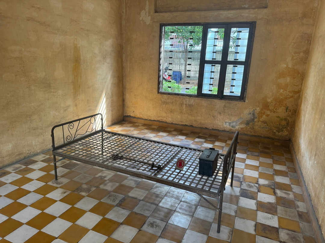 Located in the site of a former secondary school used as an internment facility known as Security Prison 21 (S-21). Over 2,000 people were imprisoned at this torture and execution centre between 1973 and 1979, at any one time there was 1,000 - 1,500 inmates, including over 500 foreign nationals, with only 12 known survivors. The buildings were enclosed in electrified barbed wire, the classrooms converted into tiny prison and torture chambers, and all windows were covered with iron bars and barbed wire.