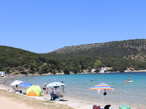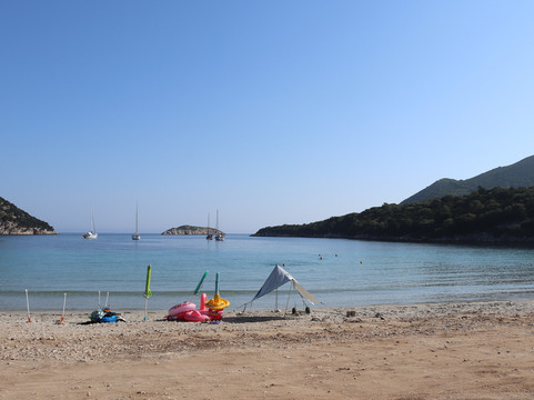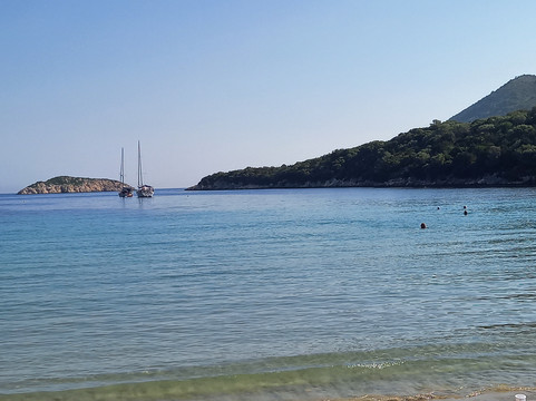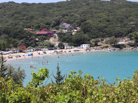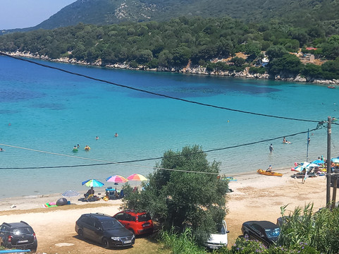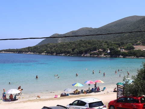 翻译:凯法利尼亚岛有史以来第一个海滩,因为它被认为是最美丽的海滩之一,所以我们想亲自测试一下。你舒适地到达也许有点太多了,我会解释为什么在海滩上,靠近它的免费停车场和不断进出的汽车并不总是令人愉快。我们很早就到达了,美丽而轻松的景色,透明的大海,但免费的海滩已经被玩具和雨伞占据了,到处都是石头、垃圾、剥皮……总之,一张让我相当失望的名片。上面有一个更衣室和一个小酒馆可以吃午餐。可以说,大海和风景是值得的,但海滩被忽视的条件并不利于它,也许我的期望太高了。