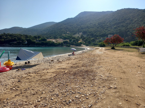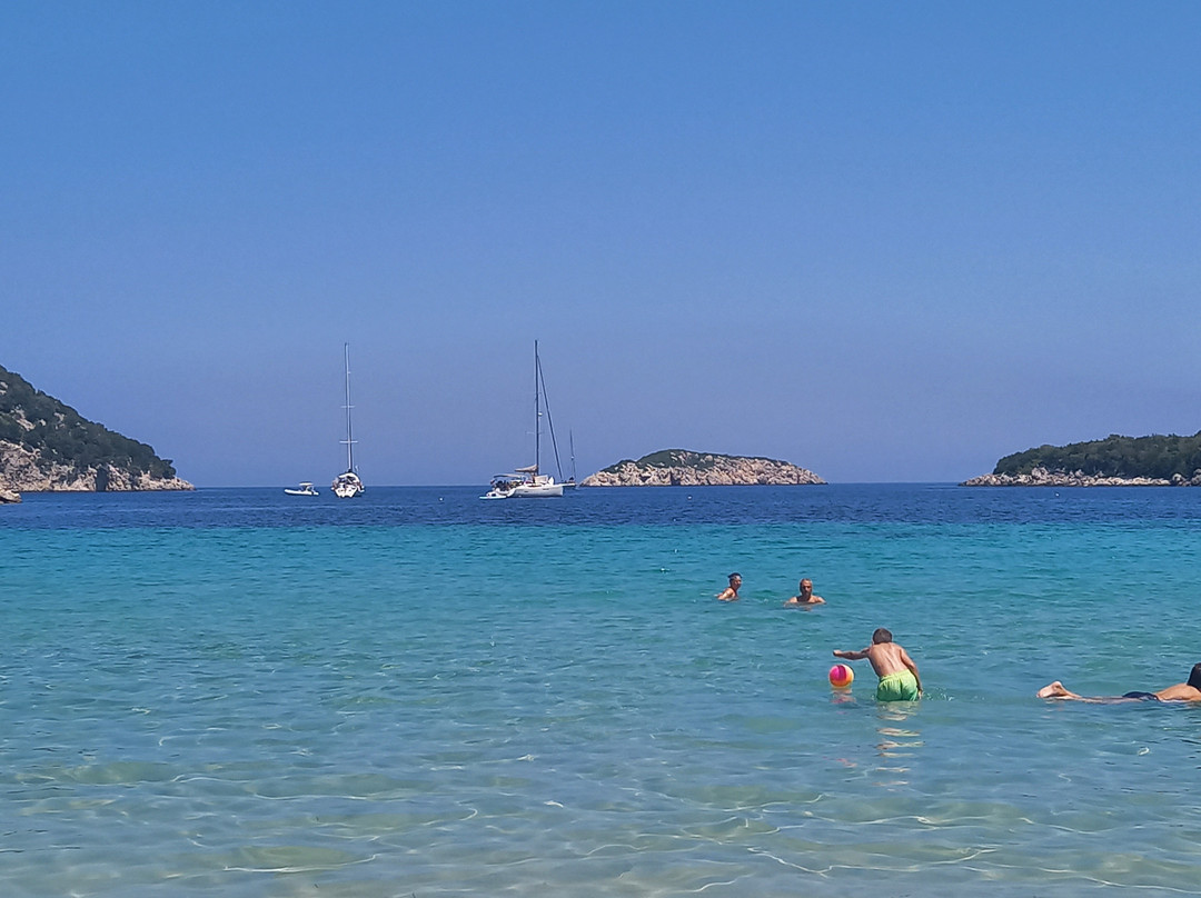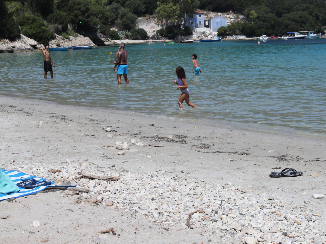 点评:Prima spiaggia vista in assoluto a Cefalonia, e visto che è considerata tra le più belle volevamo testarla di persona. Si arriva comodamemte forse un po' troppo e spiegherò il perchè, sulla spiaggia, parcheggio libero a ridosso della stessa e il continuo via vai delle auto non è sempre piacevole. Siamo arrivati presto e per primi, panorama bello e rilassante, mare trasparente ma la spiaggia libera già occupata da giochi e ombrelloni lasciati li, piena di sassi e schifezze, bucce,...insomma un biglietto da visita che mi ha alquanto delusa. Presente una cabina per cambiarsi e una taverna poco sopra per pranzare. Diciamo che il mare e il panorama meritano ma le condizioni trascurate della spiaggia non depongono a suo favore, forse le mie aspettative erano troppo alte .