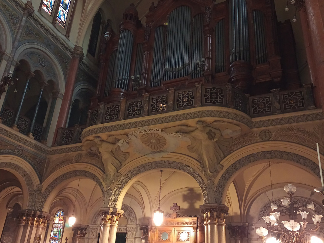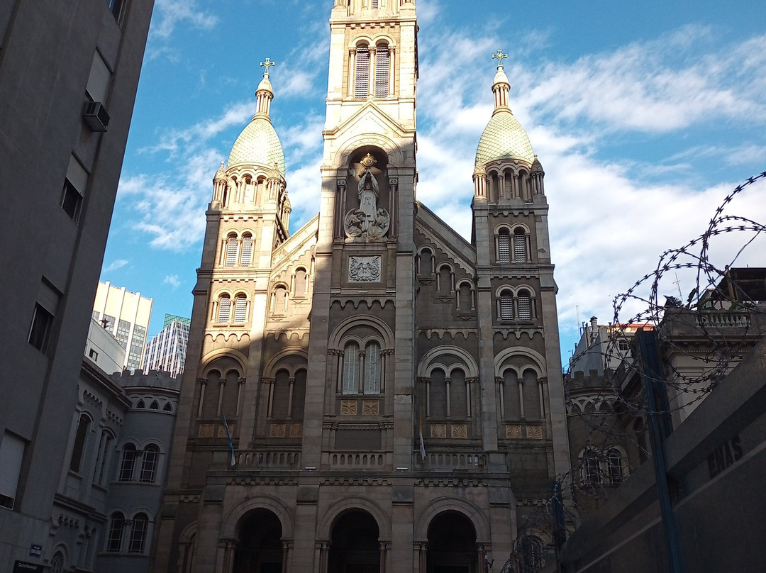 点评:Hace poco estuve en el "Santísimo Sacramento", una parroquia de culto católico localizada en la calle San Martín entre M.T. de Alvear y Dr. Ricardo Rojas, frente al Edificio Kavanagh, en el porteño barrio de Retiro. Fue mandada a construir por Mercedes Castellanos de Anchorena que vivía en el Palacio Anchorena ubicado a unos 150 metros de la iglesia y que donó a la congregación de los padres sacramentinos. La basílica fue diseñada por los arquitectos franceses Coulomb y Chauvet en un estilo ecléctico, ya que posee elementos del románico, gótico y bizantino. Fue consagrada en 1916 por el Arzobispo Espinosa y ese mismo año el papa Benedicto XV la elevó a la categoría de Basílica Menor. En su fachada se destacan cinco torres en forma de media piña, tres en el frente y dos en el ábside. Dentro de una hornacina en la torre central, se yergue un grupo escultórico que representa la Elevación de la Custodia. El interior consta de tres naves, desembocando la central en el Altar Mayor donde se encuentra la Custodia del Santísimo, realizada en oro y plata. Todo el templo lujosamente decorado, cuenta con importantes vitrales y ornamentos de mármol, granito azul, bronce y mosaico veneciano. Los confesionarios, el púlpito y las puertas de madera son obra de tallistas flamencos, al igual que el coro donde se destaca un imponente órgano de cinco mil tubos. En la cripta que se halla en el subsuelo, yacen los restos de su benefactora. Esta Basílica, además de un espacio de espiritualidad, se trata de una monumental joya arquitectónica y artística digna de ser visitada.