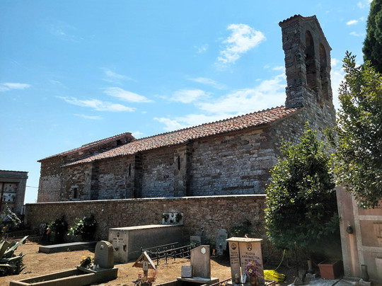 翻译:这座古老的罗马式教堂建于十二世纪,矗立在岛屿的顶部,几乎位于岛的中央(即使在船上也能清晰可见其巨大的钟形山墙;两口钟中的一口可追溯到十三世纪),孤零零地矗立着。教堂左侧是墓地。教堂由裸露的方石砌成,外观十分简朴。教堂正面,也就是前面提到的钟形山墙,只有一扇无框的大门(然而,教堂的入口位于右侧的侧门)。教堂内部尤其引人注目,墙上布满了不同时期(从十三世纪到十六世纪初)的众多壁画:有些展现了精湛的工艺,有些则反映了契马布埃和乔托追随者的风格。在长老会住宅内,还有一件珍贵的十五世纪彩绘十字架,据说是佩鲁贾的巴托洛梅奥·卡波拉利的作品。这座教区教堂是博物馆行程的一部分,该行程还包括蕾丝博物馆和船长之家,总票价为5欧元。由于其地理位置优越,教堂可欣赏到广阔的全景。您可以从城镇的任意一端攀登,要么穿过北郊,然后先经过圣萨尔瓦多教堂,要么从南郊出发,在通往古列尔米城堡的岔路口左转。前者路程较长,但坡度较小;后者路程较短,但坡度较大(从后者绕行可到达圣莱昂纳多教堂的简陋遗址)。