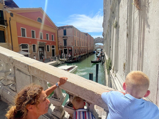 她给我的大儿子推荐了一些关于威尼斯的书籍,等我们回家后再读,还牵着小儿子的手,热情地接受了他的拥抱和亲吻。她为我们指明了午餐的正确方向,我们也采纳了她推荐的午餐地点和贡多拉船的位置。这真是在威尼斯难忘的一天!!!强烈推荐这个行程给那些想让孩子参与旅行,为孩子们创造美好回忆和全新体验的家庭!