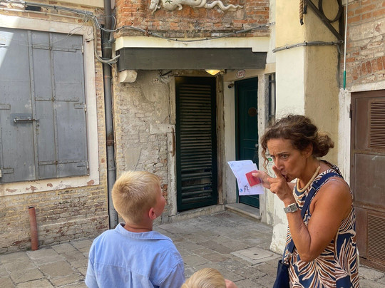 翻译:Rossana 是一位非常棒的导游,我们一家在威尼斯度过了唯一一整天(两周旅行后在意大利的最后一天)。我的儿子分别是 7 岁和 3 岁,比平时更加精力充沛,也更加活泼。Rossana 不仅出色地引导他们,让他们玩得尽兴、投入其中,兴奋不已,还分享了关于威尼斯的信息。我们参加了神秘生物之旅,两个儿子都非常喜欢!这真是寻宝游戏和观光的完美结合!