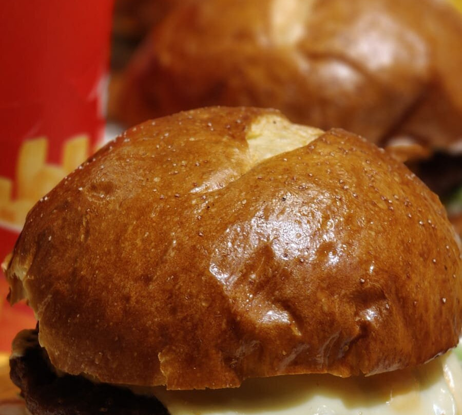 我们点了**汉堡**,味道真是棒极了——火候掌握得恰到好处,味道浓郁。面包松软可口,食材看起来也很新鲜,烹饪得恰到好处。