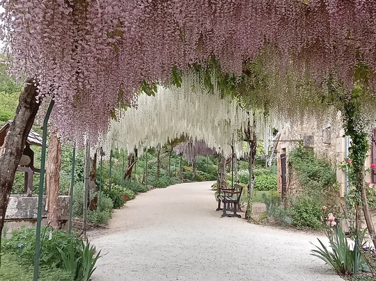 点评:j'ai attendu un an pour venir découvrir ce jardin à la saison des glycines. Le hameau est magnifique. Seulement 20 minutes de Nevers, très belle ville à faire en même temps. Le jardin époustoufle dès l'entrée. Les massifs sont impeccables, variés. Le jardin n'est pas immense, mais très beau car vallonné, avec de beaux plans d'eau et une cascade. Des arbres de plus de 300 ans. j'ai pris une journée tout de même pour profiter pleinement du jardin, faire le parcours immersif (30 min), monter au château, et pique niquer au bord de l'allier en faisant le tour du hameau qui est un des "plus beaux villages de France".