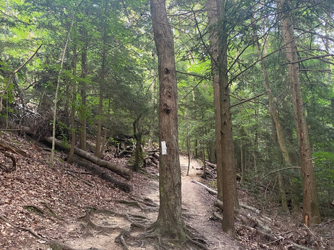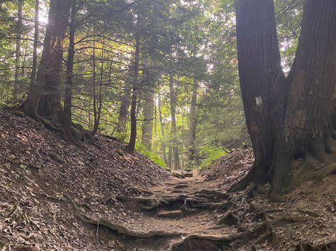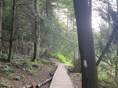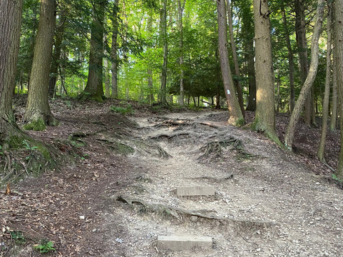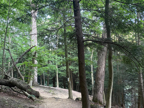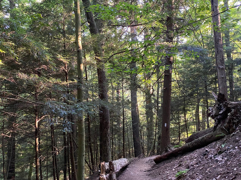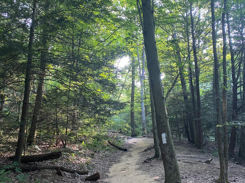 翻译:很棒的旅程!我们大约早上8点到达,然后朝公园入口走去。公园很大,有多个停车场,散布在公园各处。我们选择了公园里的两条不同的徒步路线。我们首先徒步了峡谷观景环路(Gorge Overlook Loop),这是一条环绕公园约1.4英里(约2.2公里)的环形步道。这条步道需要穿过一片森林,偶尔还能看到莫希干河的景色。这条步道难度较大,包含多个陡峭的上坡和下坡路段。我们一度不得不爬上一个小梯子才能继续走下去。我们得以从上方欣赏到森林的如画美景。我们选择的第二条徒步路线是途经普莱森特山(Pleasant Hill)的廊桥和莱昂斯瀑布(Covered Bridge and Lyons Falls),这是一条环绕公园约2.3英里(约3.7公里)的环形步道。这条步道大部分路段也穿过森林,中段有一座水坝。步道上有多个上坡和下坡路段,以及几段楼梯。由于该地区季节性干旱,我们没能看到瀑布。在徒步这两条路线的间隙,我们选择停下来探索一下瞭望塔。我们爬上了瞭望塔的台阶,但观景台被锁上了,我们没能拍到最佳的景色。我们还拍了一些廊桥的精彩照片,然后开车穿过了它。