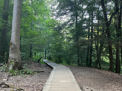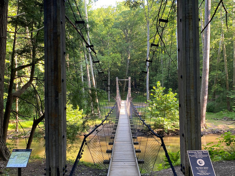 点评:Great trip. We arrived at approximately 8 am and made our way towards the entrance of the park. The park was huge, and contained multiple different parking lots, that were scattered throughout the park. We opted to hike two different trails in the park. We started our day by hiking the Gorge Overlook Loop, which was a roughly 1.4 mile loop trail around the park. The trail consisted of walking through a forest, with occasional views of the Mohican river. This trail was difficult in nature, as it contained multiple steep uphill and downhill sections. At one point we did have to climb a small ladder in order to stay on the trail. We were able to enjoy picturesque scenic views of the forest from above. The second trail we opted to hike was the Covered Bridge and Lyons Falls via Pleasant Hill, which was a roughly 2.3 mile loop trail around the park. This trail mostly took us through the forest as well, with the midpoint section of the trail containing a dam. There were multiple inclines and declines on this trail, along with several staircases. We were unable to see the waterfall due to the seasonal drought in the area. In between hiking these two trails, we opted to stop and explore the fire tower. We were able to climb up the steps of the fire tower, however the viewing platform was locked and we did not get the best views of the area. We also snapped some great pictures of the covered bridge and drove across it.