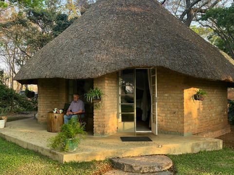 翻译:下午到达,喝了咖啡、吃了饼干,在小屋安顿下来,然后第一次开车去喂犀牛。真是一次难忘的经历!我们吃了一顿非常美味、摆盘精美的三道菜,配上一杯仅售 3 美元的葡萄酒。在非常舒适的床上睡了个好觉。早上开车陪大象散步、喂大象,然后回来享用美味的早餐。下一次开车是在早上 10 点,我们的导游很棒。总之,他知识渊博、风趣幽默,他讲的笑话非常搞笑,你都不知道该不该相信他!!我们看到了丰富的野生动物,包括黑犀牛、白犀牛、角马、疣猪等等。在继续开车之前,我们在灌木丛中吃了一顿丰盛的午餐,喝了饮料。下午 3 点左右我们回到小屋,喝了咖啡、吃了饼干,然后返回鲁瓦的基地。我强烈推荐这个野生动物保护公园。很遗憾没能见到朱迪·特拉弗斯,因为我们在津巴布韦担任全国牧羊犬决赛的评委,而她只是非参赛选手。感谢所有让我们的旅程如此愉快和顺利的人。
