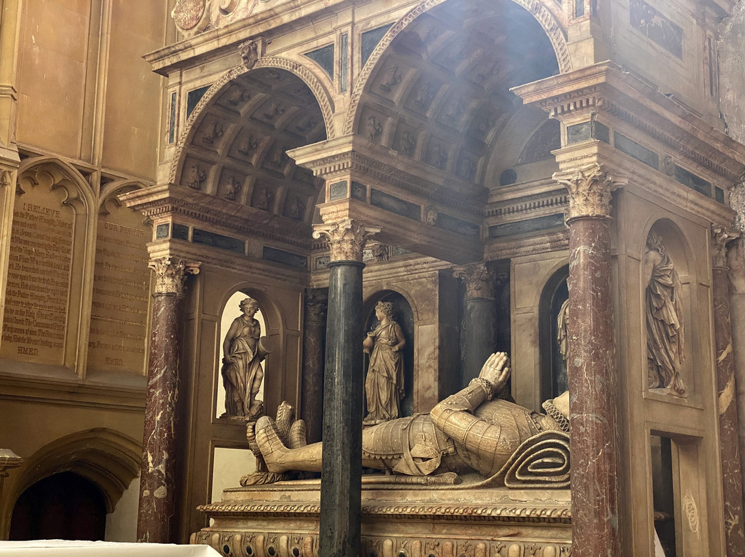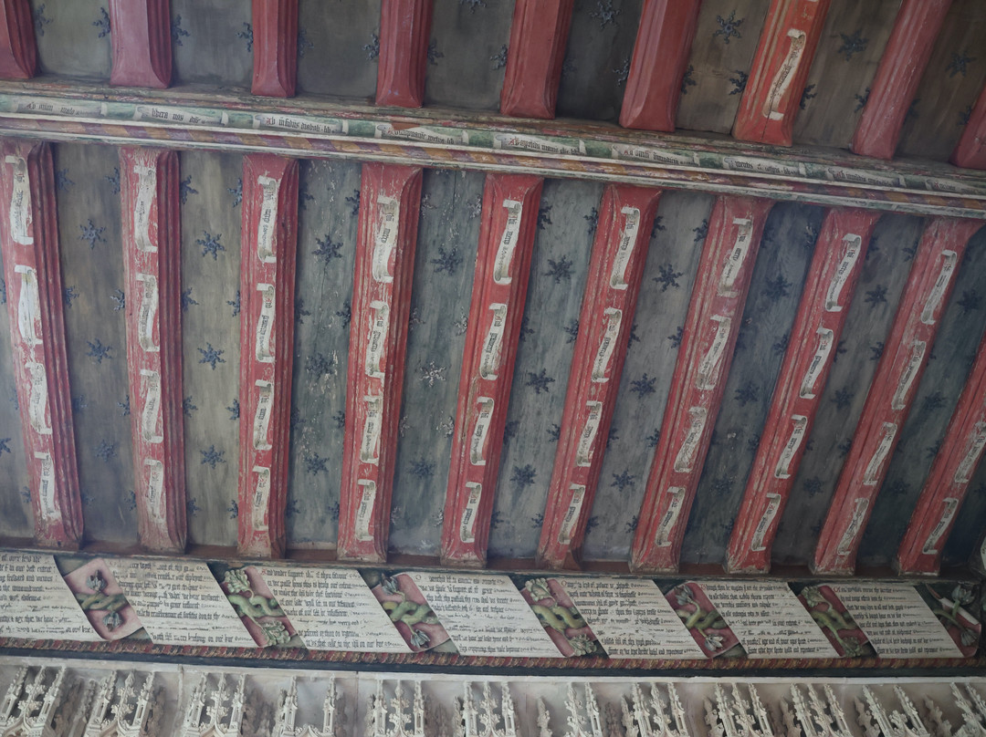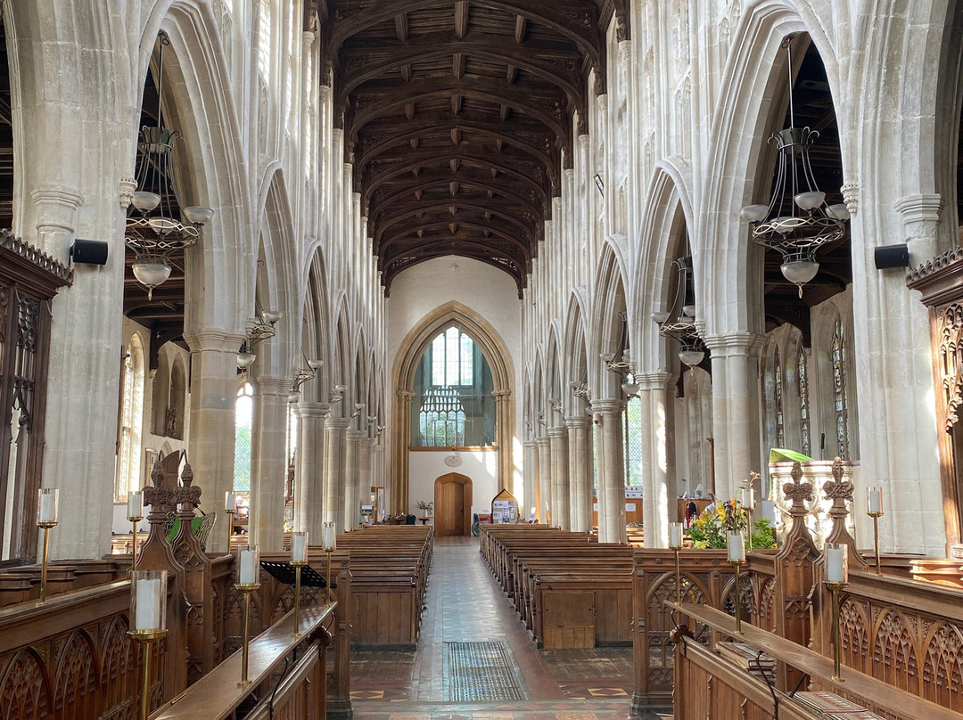 点评:A chance find while staying in Long Melford. We visited on a sunny Monday morning and on entry were met by two members of the congregation who gave us a brief overview of this lovely parish church. Constructed in the late 15th Century, likely from profits from Suffolk’s wool trade, and with an early 18th Century tower, Holy Trinity is impressive. It retains eight magnificent medieval stained glass windows, among them a tiny gem of colour showing three hares whose ears are intertwined to form, as some believe, a representation of the Trinity. There are wonderful marble and alabaster funerary monuments, an extraordinary assemblage of church brasses, and some lovely painted walls and ceilings. A prayer for the souls of the church builder, something not often found on the exterior of parish churches, is carved into a long band of stone under the eaves. A donation (tap and pay) is much appreciated, there is a small gift shop onsite, and apparently one can even arrange refreshments to precede or follow a tour (contact the events coordinator). Expect to spend at least an hour.