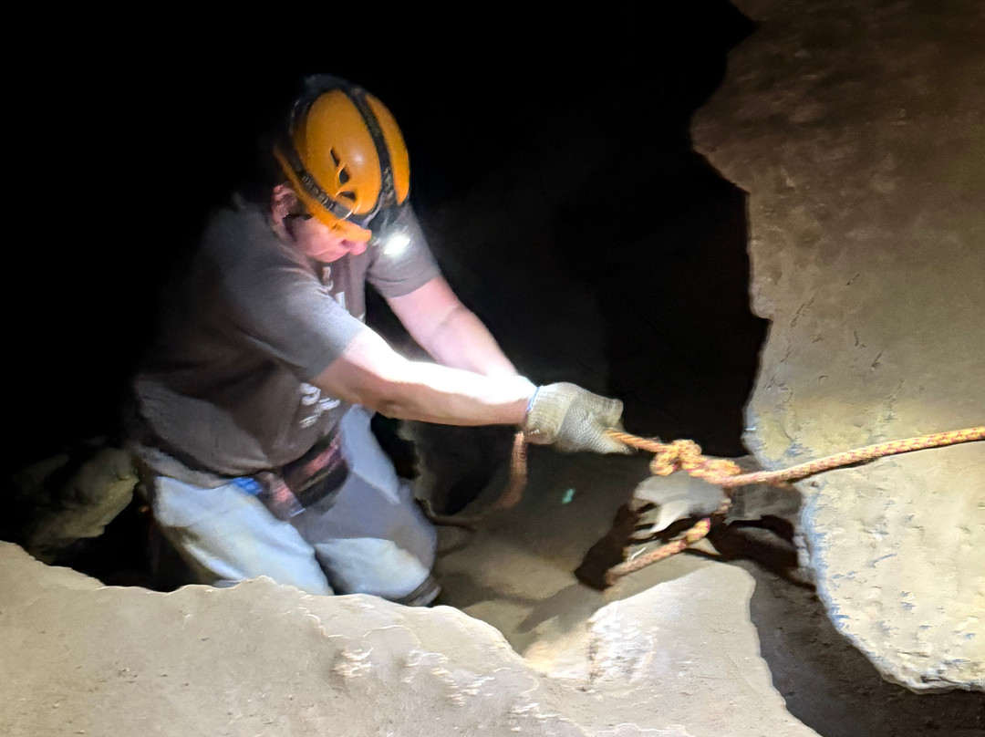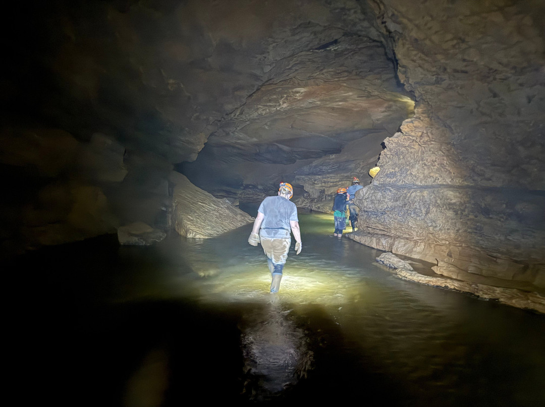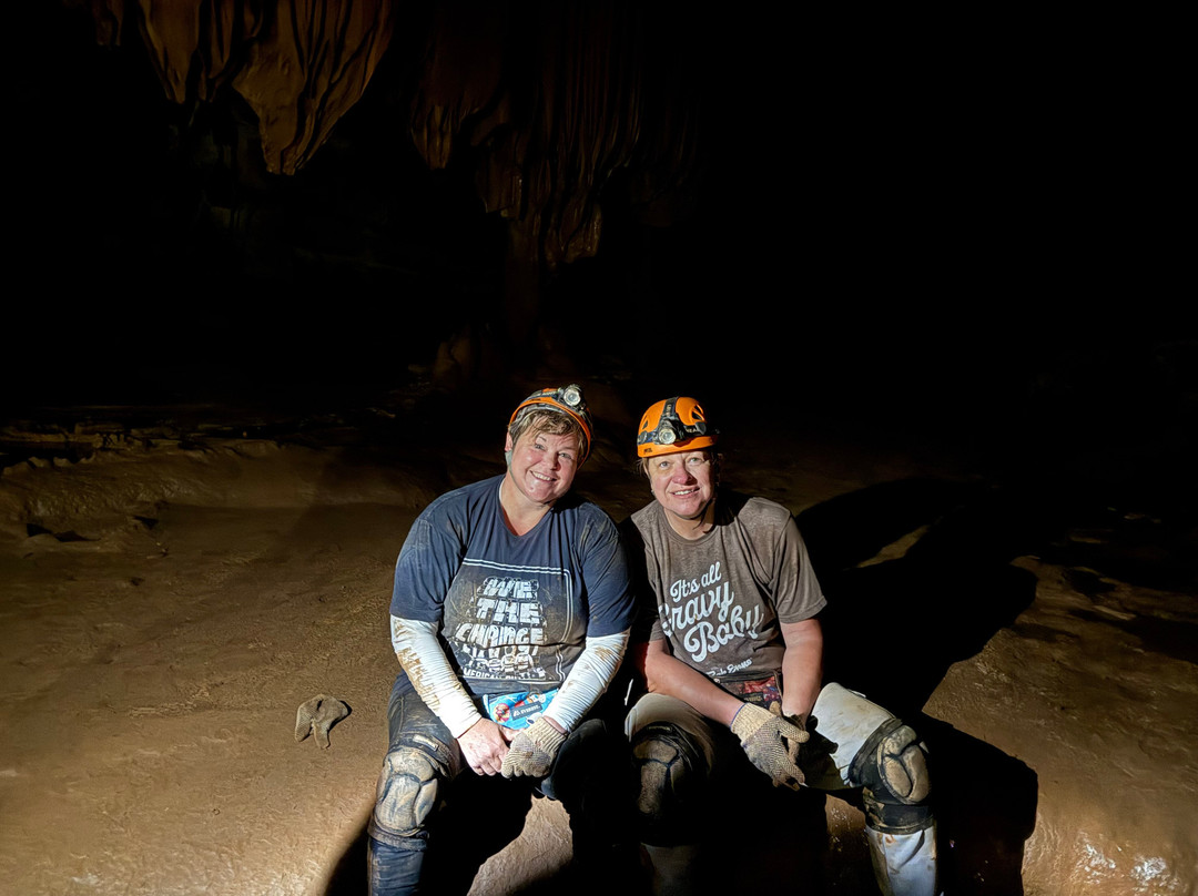 翻译:我们和梅尔、约翰一起在沃利斯洞穴进行了一次难忘的导览游!他们知识渊博,非常随和,总是笑声不断。我们一行人包括两位50多岁的女士和几位3到20岁的男士。我们探索了洞穴中教堂般的区域,一直到“兔子洞”,我们用膝盖和肚子爬了出来。洞穴的地貌令人叹为观止,梅尔和约翰向我们讲述的历史和地质知识更是无价之宝。由于您活动量大,温度非常适合。请勿不穿带胎纹的鞋子探索。您将使用护膝和他们提供的手套。他们甚至还提供了80年代的腰包,可以装手机、零食和水!岩层令人叹为观止,令人着迷!您将漫步在一个全新的世界,让您感受到地球进化的漫长历程!感谢梅尔和约翰让我们体验你们的领地!这绝对是人生必做清单上的一项!