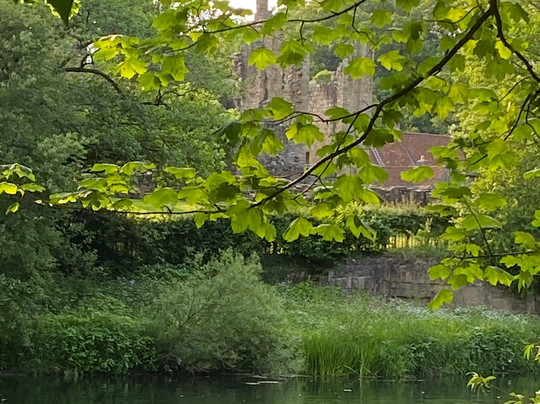 Walking bridge across the river to the ruins of the abbey standing proudly on the river bank, a magical place to visit, and unbelievably free.