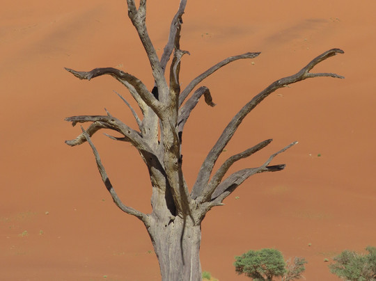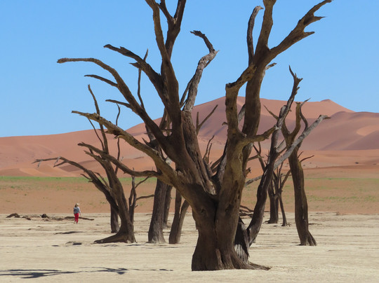 点评:Its a long drive from the main gate to the dunes and Deadvlei, and also some deep sand tracks. If you are not confident in driving a 4x4 , then you can take a shuttle. From the car park its 1.5 kms to the petrified forest , with only a small incline. The site is much bigger than I expected and is spectacular, such a range of colours in contrast to the bright blue sky. You can take as long as you like wandering around the site, but because they are fragile you must not climb or touch any of the trees. It is very popular and there are a lot of people there, but it is still possible to get empty shots. People are very good in waiting their turn to take photos in the most beautiful locations, and lots of people offered to take photos of each other so that couples could be together. Best to go in the morning or late afternoon as it gets very hot in the middle of the day Make sure you wear a hat and suncream and take water . We were lucky to visit after the heavy rains so the green grass and flowers only added to the beauty. From here you can also climb up the surrounding dunes, if you are fit enough!