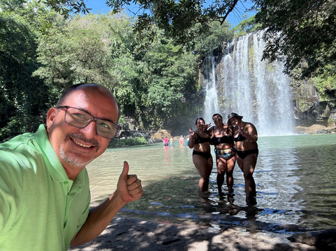 我们预订了五合一行程,包括瀑布之旅、带温泉和泥坑的次生火山口之旅、传统的哥斯达黎加午餐以及轻松的雨林漫步。我们还预订了私人行程,Javier 是我们的导游。3 个人乘坐一辆可容纳 12 人的新面包车,价格很划算。