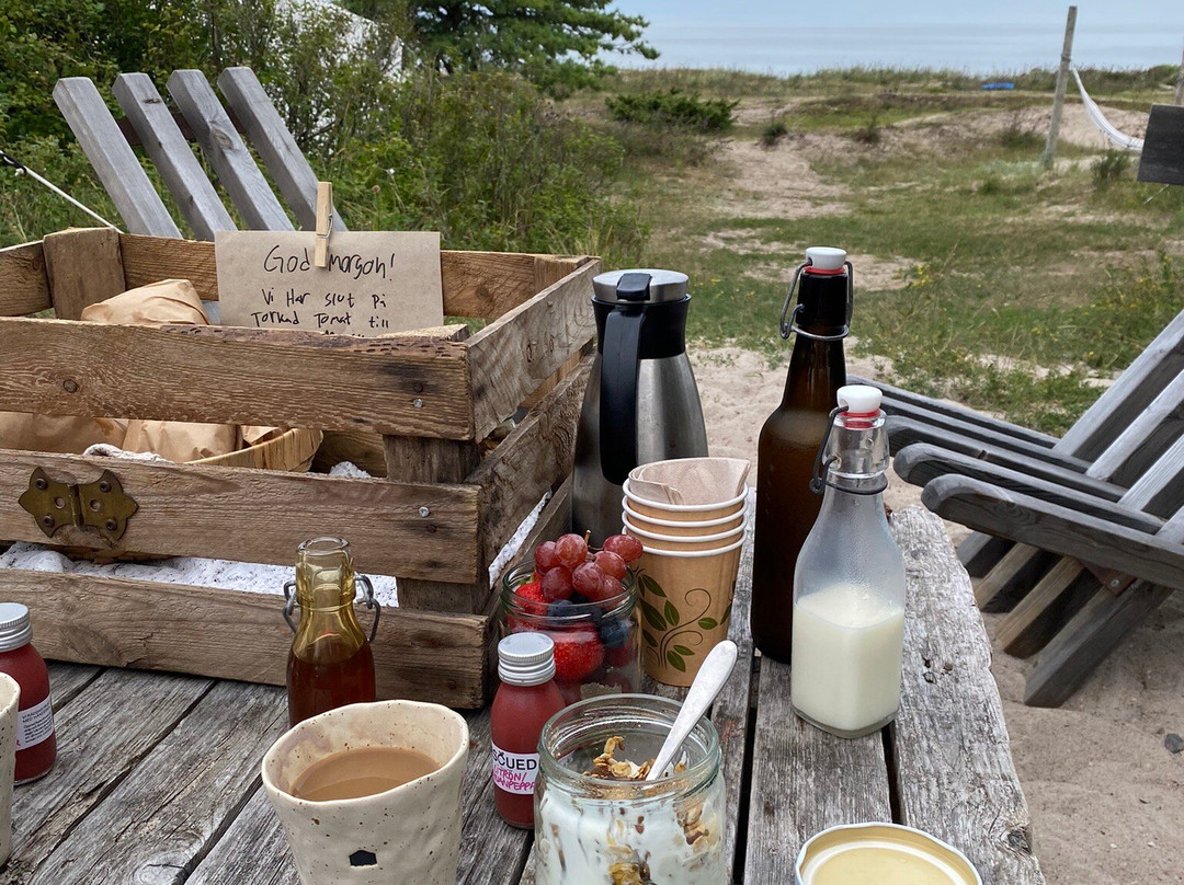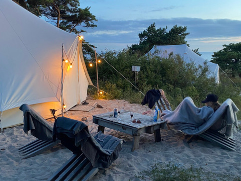 点评:Vilken underbar vistelse vi hade på Surflogiet! Vi bokade övernattning för att fira min mans födelsedag tillsammans med våra barn 5, och 8 år. Superfina tält och fräscha toaletter och duschar för boende (separat med kod). Underbara dofter från doftpinnar både i tältet och vid dusch/toalett vilket gav känsla av spa-vistelse. Utifrån tidigare recensioner var vi tveksamma till restaurangen men även där blev vi riktigt imponerade! Supergod mat, goda drinkar och vi fick fint bemötande av samtlig personal vi stötte på! Härlig frukost serverad till tältet på morgonen. Barne roade sig med att leka på stansen, eller gunga i hängmattor/gungor. Verkligen barnvänligt ställe trots att det känns som en lyxig resort. Extra plus för att det ingick ögonbindel och öronproppar då ljud och ljus blir påtagligt i tält. Det enda vi ångade var att vi inte stannade en natt till! Får ni möjlighet - åk hit!