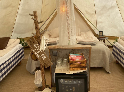 翻译:我们在 Surflogiet 度过了多么美好的时光!我们预订了一晚住宿,与 5 岁和 8 岁的孩子一起庆祝我丈夫的生日。超级漂亮的帐篷以及为居民提供的新鲜厕所和淋浴(用代码分开)。帐篷里和淋浴间/厕所里都散发着美妙的香味,给人一种水疗住宿的感觉。根据之前的评论,我们对这家餐厅犹豫不决,但即使在那里,我们也印象深刻!超级美味的食物,美味的饮料,我们遇到的所有员工都受到了很好的对待!早上,帐篷里供应美味的早餐。孩子们在打孔机上玩耍,或者在吊床/秋千上荡秋千,玩得很开心。真正适合儿童的地方,尽管感觉像是一个豪华度假村。额外的好处是,帐篷里的声音和光线变得很明显,所以还配备了眼罩和耳塞。我们唯一的遗憾是我们没有再住一晚!如果你有机会 - 就来这里吧!