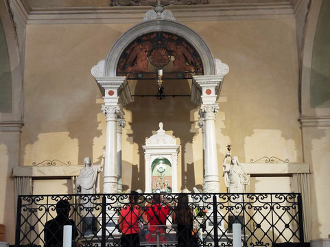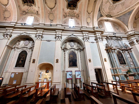翻译:它几乎位于罗马大街的起点,从普雷比席特广场往上走,从那里可以看到部分的轮廓。除了所讨论的宗教建筑群的艺术/建筑价值之外,它的重要性显然与这里发生的圣体圣事奇迹有关,历史上第一个此类奇迹可以追溯到公元八世纪,在当时的前罗马式教堂中圣莱贡齐亚诺 (San Legonziano) 修道院,隶属于巴西利亚修道士管理的同名修道院。随着后者被驱逐,修道院被委托给修道院小修士,他们以哥特式形式重建了教堂和修道院。该建筑群在 18 世纪以巴洛克风格修复,但在教堂保持运作的连续性的同时,修道院在 19 世纪初被废除。今天,教堂保留了哥特式的外观,水平的顶面立面由裸露的石块制成,尖顶大门在此处打开(青铜门是现代的);然而,上部部分在 18 世纪进行了重修,这一时期典型的大窗户的存在以及剥落石块的使用就证明了这一点。从普雷比席特广场(Piazza del Plebiscito),您可以看到宏伟的 13 世纪钟楼的全貌,带有哥特式单柳叶窗和双柳叶窗,但上面的八角形部分是 18 世纪添加的彩色瓷砖小圆顶。内部只有一个中殿,不是很大,是巴洛克风格,可以欣赏到拱顶的装饰,包括十八世纪的灰泥和壁画。侧壁上有六个拱门,但只有最后两个(每侧各一个)设有华丽的巴洛克祭坛。在其他拱门中,只有画布,周围有丰富的框架。凸起的长老会堂上有一个珍贵的十九世纪天篷,其下是圣幕,里面有珍贵的十八世纪圣体圣体,里面有奇迹的遗物。反面有一架壮观的巴洛克风琴。在前修道院中,您可以参观修道院的外观,其外观是十八世纪翻新的,以及前食堂,现在用作圣体奇迹的永久博物馆。从博物馆出发,您可以前往十三世纪教堂的地下室,其中包括圣莱贡齐亚诺前建筑群的遗迹以及更古老的证据(例如罗马蓄水池的遗迹);除了被认为发生奇迹的房间(因此那里有前罗马式教堂)之外,您还可以看到圣莱贡齐亚诺的演讲室,那里散布着十六世纪的壁画和其他壁画,其中包括一幅十四世纪的壁画受难。考古路线从这里开始,穿过普雷比席特广场下方,通向戴克里先桥。