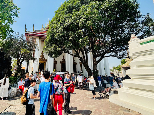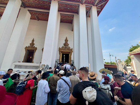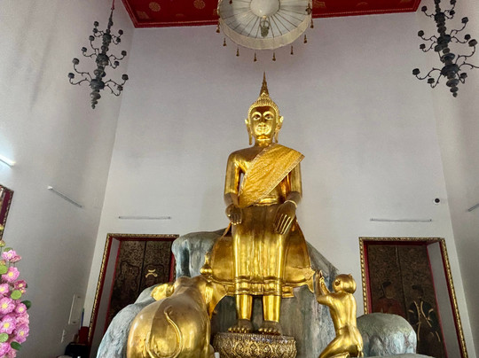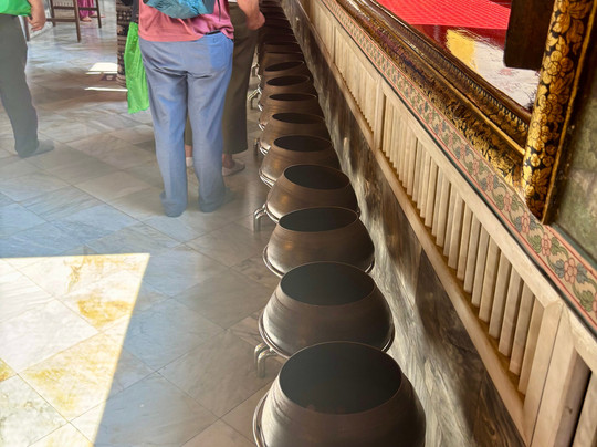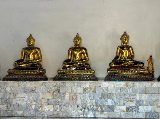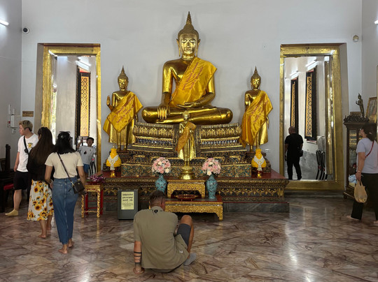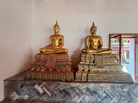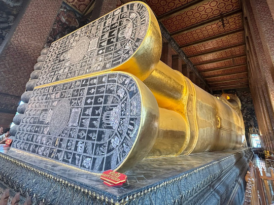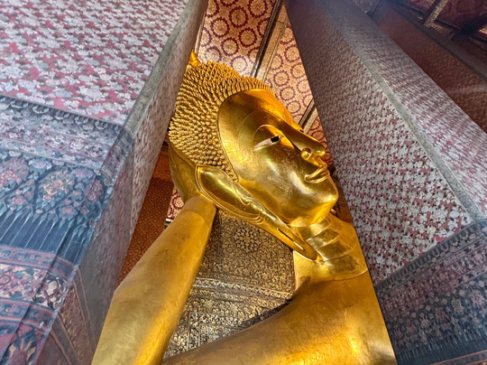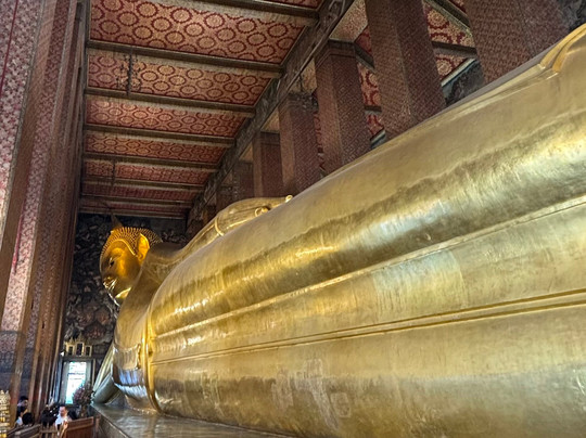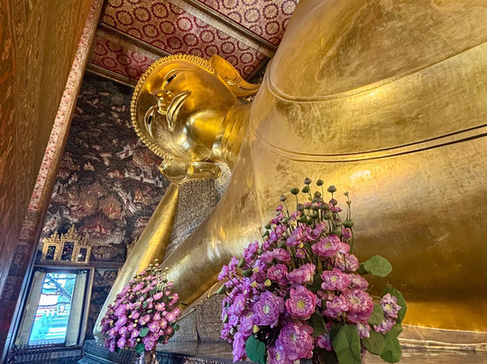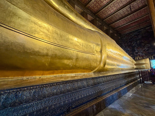 Many Buddhas with the 87 feet long reclining Buddha a must see. This is a functional religious site so obey the rules.