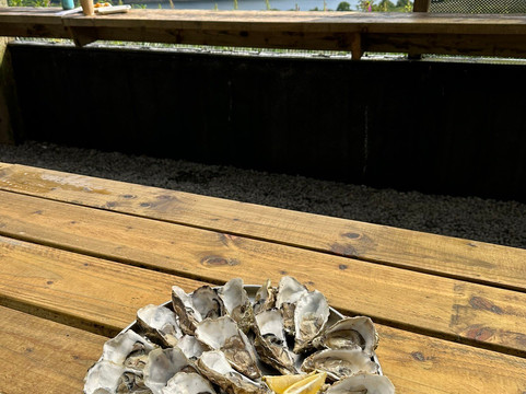 The oysters are what you need to buy here because they’re the freshest you’re ever going to get Unless you’re picking them off the beach or ocean yourself. They are amazing and so fresh and I highly recommend adding a little scotch to it if you have it as a little, pick me up in the middle of the day. You order at the kiosk inside the shed and they shuck them right in front of you and bring them to you in the adjoining Picnic table setting that overlooks the bay. Picturesque doesn’t even describe it.