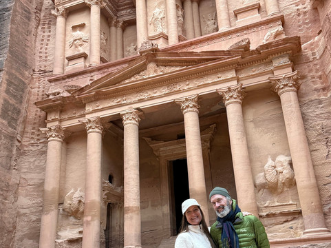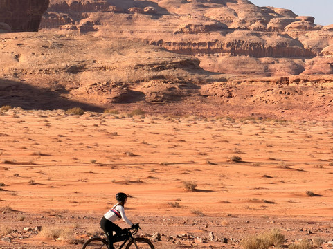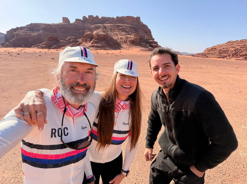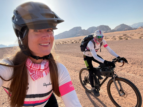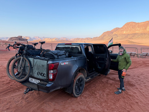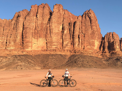 翻译:作为一对已婚夫妇,我们一起骑行环游世界。艾米之前参加过Experience Jordan的徒步旅行,她建议我们也尝试一下他们的服务。我们联系了Experience Jordan的安东,他根据我们的行程安排和想去的地方,为我们量身定制了完美的骑行路线。我们从美国带来了自己的砾石自行车,非常适合山地和沙漠地形。三天行程包括:从绍巴克城堡到佩特拉,从佩特拉到瓦迪拉姆,以及从瓦迪拉姆南门进入沙漠公路。除了骑行之外,这次旅行还有许多其他亮点,包括:傍晚时分游览佩特拉(游客较少!),与法蒂玛享用美味可口的家常早餐,她还和我们分享了她在佩特拉的成长经历以及与考古学家的相识;在正宗的贝都因帐篷里围坐在篝火旁喝茶;与奥马尔一起乘坐吉普车游览瓦迪拉姆,他带我们参观了瓦迪拉姆的特色景点,最后欣赏了日落美景(绝佳的拍照时机!)。我们还选择在返回安曼之前,在历史悠久的亚喀巴停留,享用了一顿可以俯瞰红海码头的午餐。我们非常感谢我们的司机兼导游艾哈迈德·阿尔扎利贝赫的服务和专业精神,他知识渊博、耐心细致、灵活周到,而且乐于助人。即使我们停下来拍了很多照片和视频,他也能确保我们按计划进行。我们始终感到很安心。每当需要我们改变行程时,艾哈迈德总能找到合适的解决方案。艾哈迈德的驾驶技术也非常出色,能够应对各种路况。路线规划得非常完美。我们简直不能更满意了。总的来说,我们大约有50%的路程是越野骑行。我们经常停下来欣赏约旦的壮丽美景并拍照留念。我们喜欢欣赏一个国家的自然风光;这趟旅程充满挑战,也令人无比愉悦!