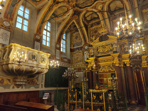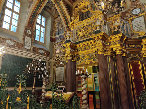翻译:卡萨莱蒙费拉托犹太教堂于十六世纪末落成,拥有非常丰富的巴洛克装饰装置,其中巨大的圣约柜、不寻常的唱诗班和珍贵的天花板脱颖而出。博物馆毗邻犹太教堂,分布在三层楼内,收藏了一系列法衣和圣物、一些托拉、银器、织物,地下一层收藏了大量传统烛台,其中一些是由著名艺术家制作的。犹太教堂可以免费参观,一般都有工作人员在场讲解其主要特色,而博物馆则需要付费,并且只能在导游的带领下参观。在计划您的参观之前,最好咨询一下开放时间,因为开放时间非常有限,并在必要时进行预订。完整参观犹太教堂和博物馆大约需要两个小时。您可以在犹太教堂内拍照,但不能在博物馆内拍照。这是一个毫无疑问的重要性的地方,当然值得彻底参观。