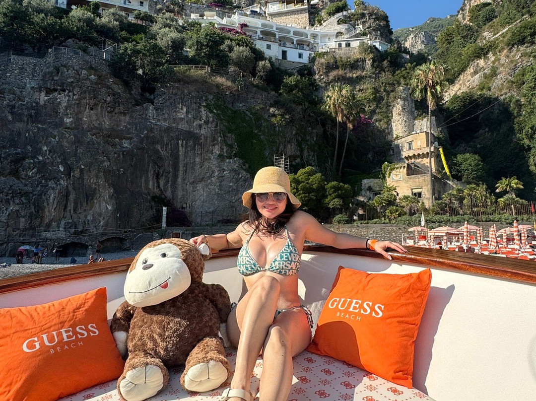 点评:We had such a great time at Arienzo beach club! We booked the package that includes 2 glasses of Dom champagne, caviar appetizer and lunch. We thought it was well worth it. There is a separate pier at Positano beach to catch their boat taxi. Upon arrival, they have a shaded outdoor lounge with cold drinks. They take you to the private beach in their boat taxi which has a cute teddy bear and Guess Beach orange pillows. The beach area was great with lounge chairs and umbrellas and a table. It was nice that it was not crowded at all unlike the beach area at the Positano beach. The package we got included lunch, 1 starter and 1 main for each person. I got the caprese salad and sea bass. Delicious and the fish was very fresh. There is a kitchen at the beach shack where I could see them make the food. They even have a DJ spinning tunes. There are flushing toilets. They have the same boat taxi that makes sure everyone gets a boat ride back so no worries about walking back. Great experience and highly recommend.