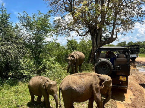 翻译:我们预订了 Lahiru Prasad 的游猎之旅。我们找不到比他更好的导游了,因为他非常照顾我们,在 Tangalle 安排了接机,然后把我们送到 Ella,并确保我们尽可能多地看到公园里的动物。从一开始我们就通过 WhatsApp(+94 76 272 6799)交谈,Lahiru 反应非常迅速,愿意就何时出发以及如何调整游猎行程以避免下午可能出现的阵雨提出建议。Lahiru 是一位经验丰富的导游,多年来一直带领人们参观 UNP 的大象,同时也试图发现其他动物和鸟类,让这次旅行更加愉快有趣。他技术娴熟,甚至可以通过随身携带的双筒望远镜用手机拍摄非常清晰的照片。除了“狩猎”动物并试图在灌木丛中发现它们之外,Lahiru 还是一位很棒的故事讲述者,还提供了有关大象和其他动物的有趣事实和提示。他非常细心和体贴,总是确保乘客满意并玩得开心。我们看到了许多大象、鸟类和其他动物,我甚至想不出它们的名字,但总的来说,这次游猎之旅是一次很棒的冒险,与野生动物相处的体验非常棒,我强烈推荐 Lahiru,因为他是这次游猎之旅最好的导游和好伙伴。