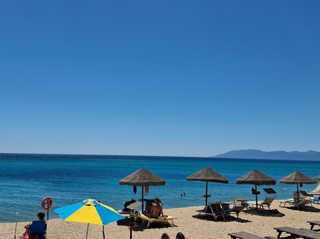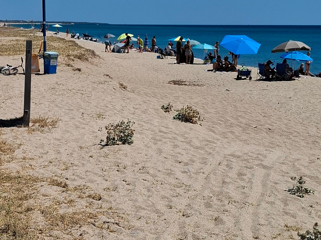 沙滩上有一些躺椅和遮阳伞可供出租。大多数游客选择在沙滩上铺开沙滩垫和毛巾,因为沙滩空间非常宽敞。也有不少人自带了遮阳伞、椅子和沙滩椅。