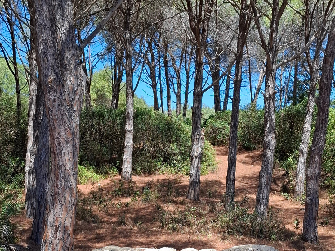 我们开始步行前往海滩,需要经过几座木桥,穿过一片松树林。这些桥横跨了彼得罗苏湿地(Stagno Petrosu)的水面,这片湿地我们另行介绍。