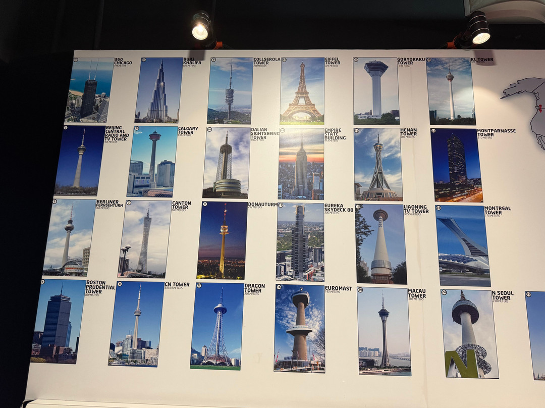 空中露台可以让你到达顶层,欣赏高楼林立的景色,而不会被屋顶遮挡。景色确实令人叹为观止,但我个人并不太感兴趣。还有一个叫做“空中盒子”的透明玻璃舱,地板是透明玻璃,下面就是景色,但进入这个空间拍照需要额外付费,而且时间只有大约10分钟。对于像我一样恐高的人来说,这可能会有点吓人。这里还有一个展览,展示了世界各地其他同等高度的摩天大楼的照片,可以进行比较,也方便游客了解相关知识。
