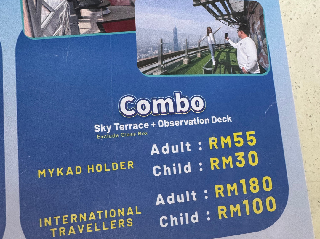 翻译:我们周日下午参观了吉隆坡塔,购买了成人和老年人联票,可以参观空中露台和观景台。非马来西亚游客的票价会大幅上涨,非常昂贵。我们去的时候人不多。