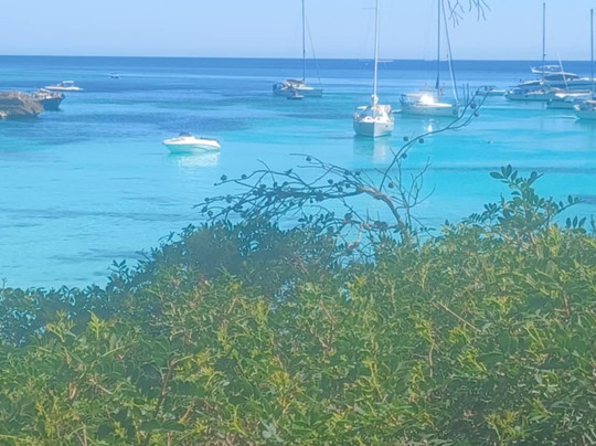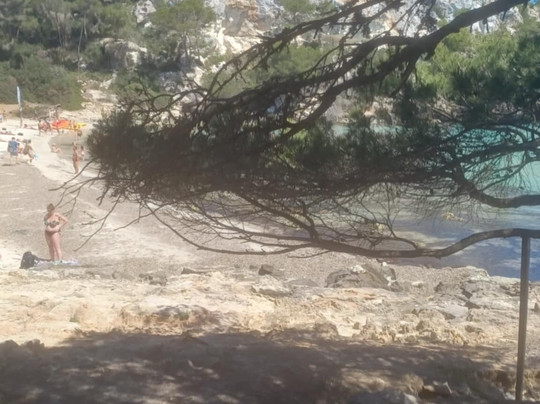 翻译:…在卡米德卡瓦尔斯徒步旅行时!…我经过了梅诺卡岛的这部分!…可以说是岛屿的南部!…我到达了卡拉马卡雷拉海湾!…据说它是岛上最著名的海湾之一!…让我印象深刻的是!…海水呈绿松石色!…我在卡拉图尔克塔海湾也注意到了这一点!…这里的风景真是太棒了!…宽阔的沙滩!…有救生员!…还有苏西酒吧/餐厅!…有很多座位,还有凉爽的松树林!…我在这里停了下来!…欣赏这自然奇观!…喝点清凉的!…在五月底的炎热天气里!…我能说什么呢!…一个真正美丽的海湾!…一个真正的天堂!…这就是卡拉马卡雷拉海湾!…绝对值得一看!…如果你有机会梅诺卡岛!!…🌊🎉🔝⬆️💯🌊🎉‼️