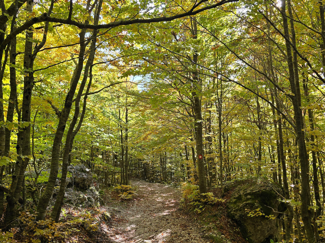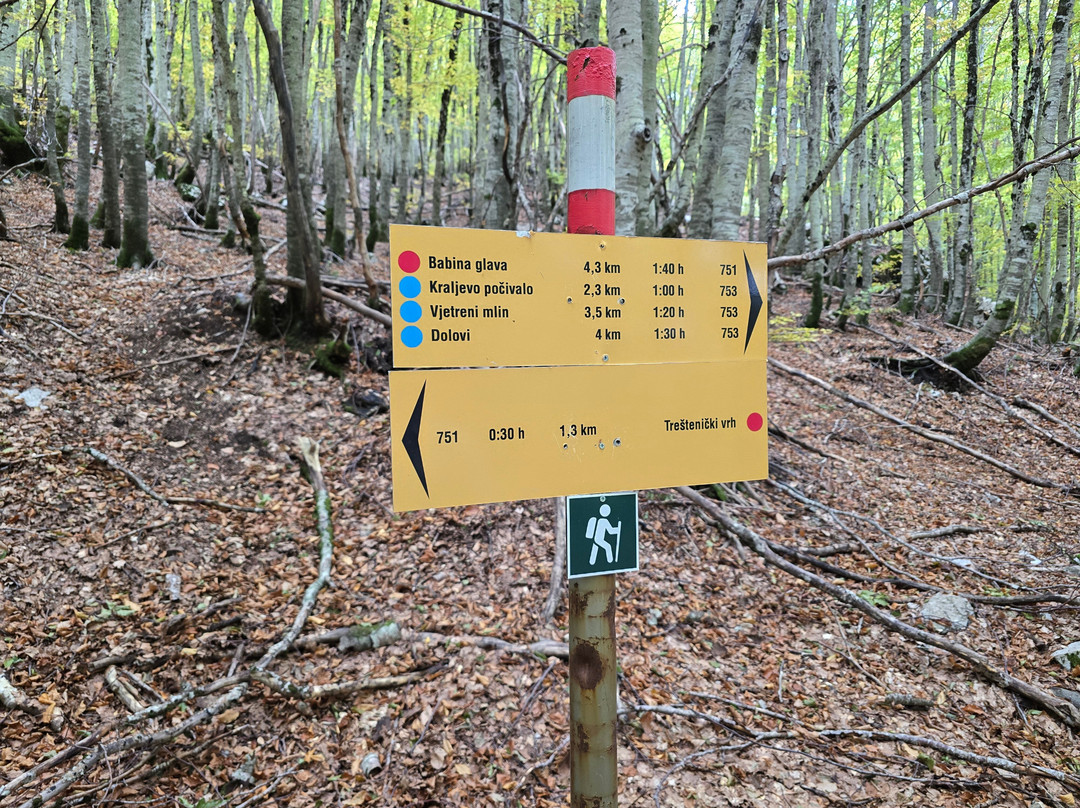 点评:The Wolf Trail starts on the left of the Ivanova Korita hotel (see attached picture). There is a small area for parking (not at the hotel...). The first part is on a paved road, until point A on the map (see attached map). At point A we went clock-wise (left), and walked to point B (gravel trail). At point B (see attached picture) you can either go right (main trail), or go left on the detour and climb up to a very pretty observation point (the climb isn't difficult, but it's more challenging than the main trail, which is mostly flat). From the observation point you climb down, and again reach point B. From here it's a circular trail, which goes in and out of the forest, with nice views of Kotor bay at some points. Continue through the village of Dolovi, and you will reach point A, and from there back to the start of the trail.