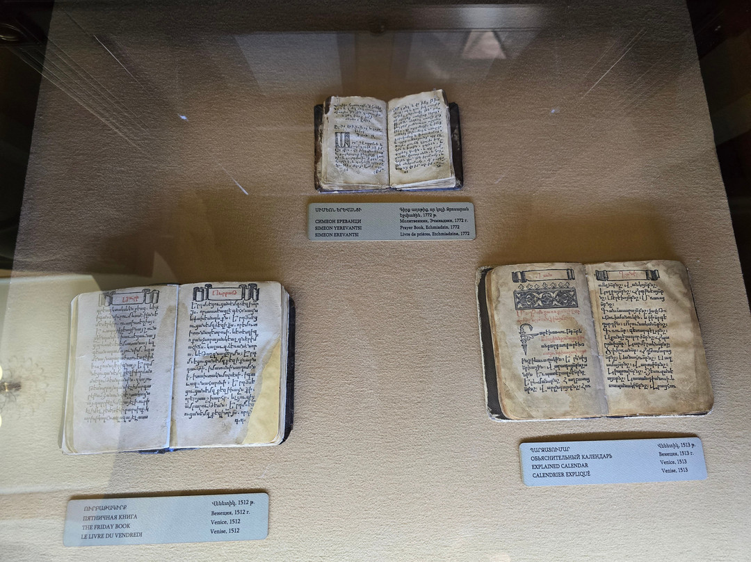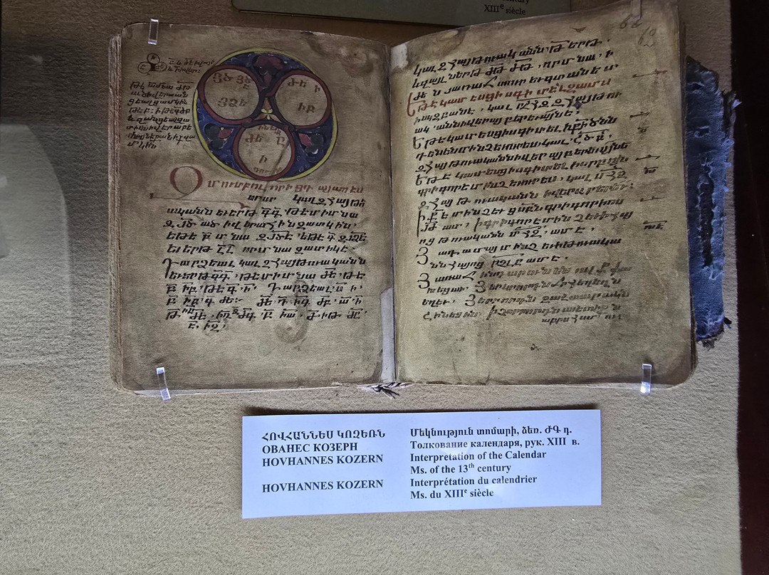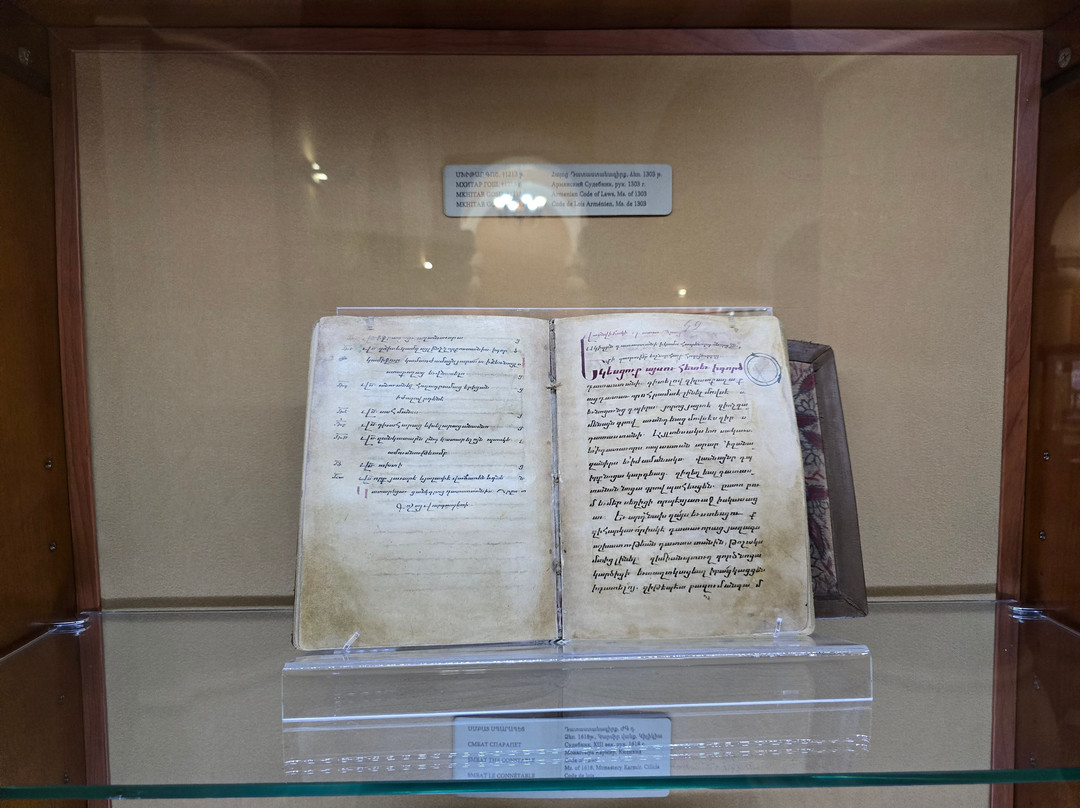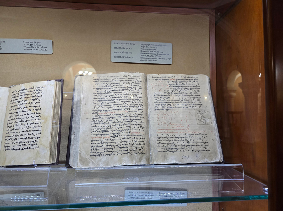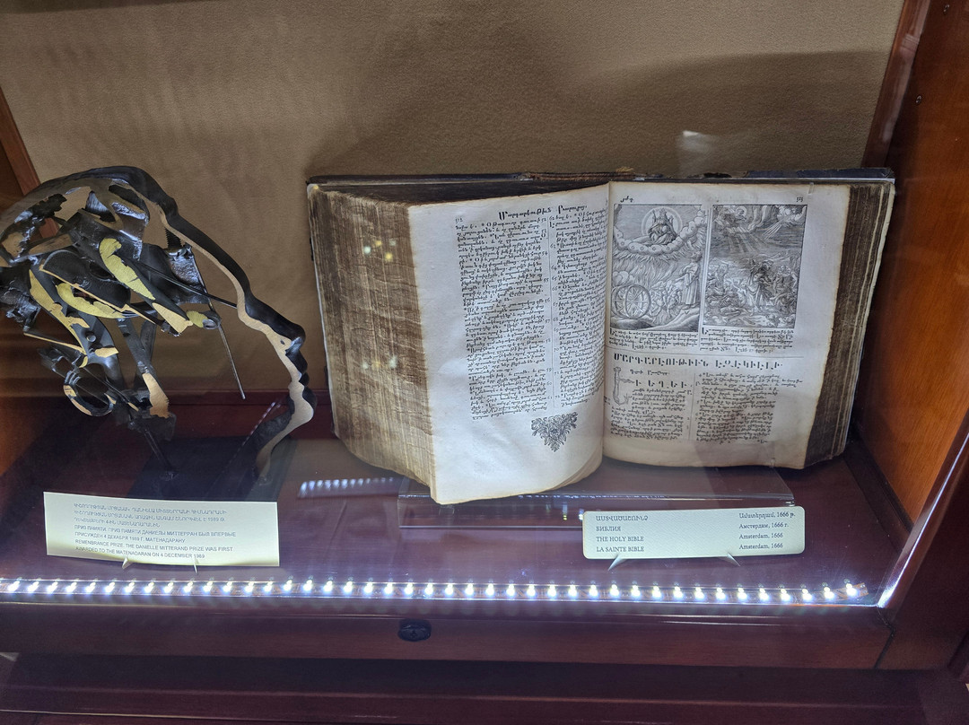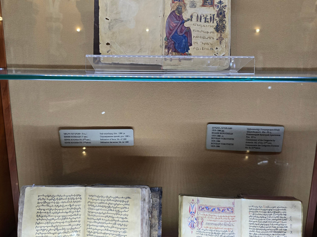 点评:That is one of the best established museums in Armenia. It houses one of the greatest collections worldwide with more than 23000 manuscripts and over half of a million documents. The majority of these manuscripts are obviously Armenian, while there are also many manuscripts in many historical languages (arabic, Persian, Turkish, Greek, Latin, Russian, Cyrillic, Slavic,...etc, and in all aspects of sciences, though a great percentage are religious manuscripts.